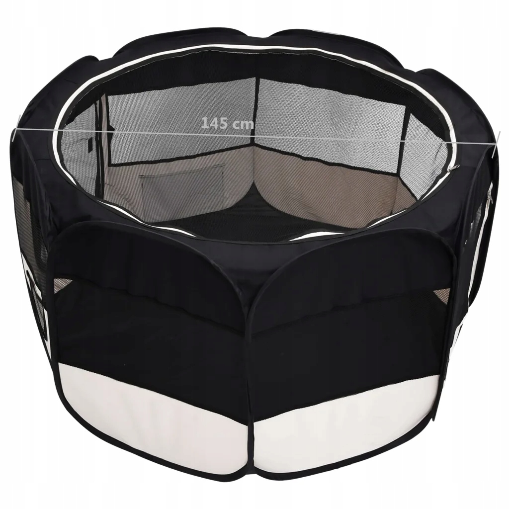 Складний манеж для собак, з сумкою, чорний, 145x145x61 см