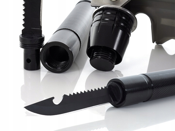 З іншого боку знаходиться дворядна пила і безпечне лезо для розрізання ременів і мотузок.