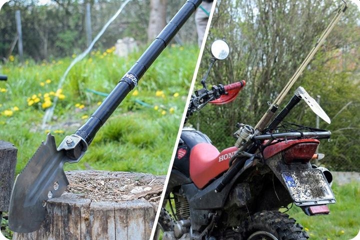 Якщо вам потрібен довгий гострий інструмент, ви можете легко відкрутити лопату з валу і покласти лезо ніж на його місце або скласти весь вал двох елементів!