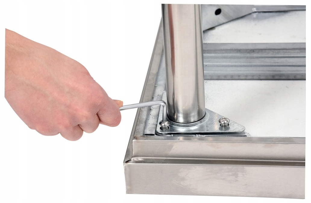 Ноги таблиці, виготовлені з круглих профілів, мають коригування висоти в діапазоні +/- 15 мм,
