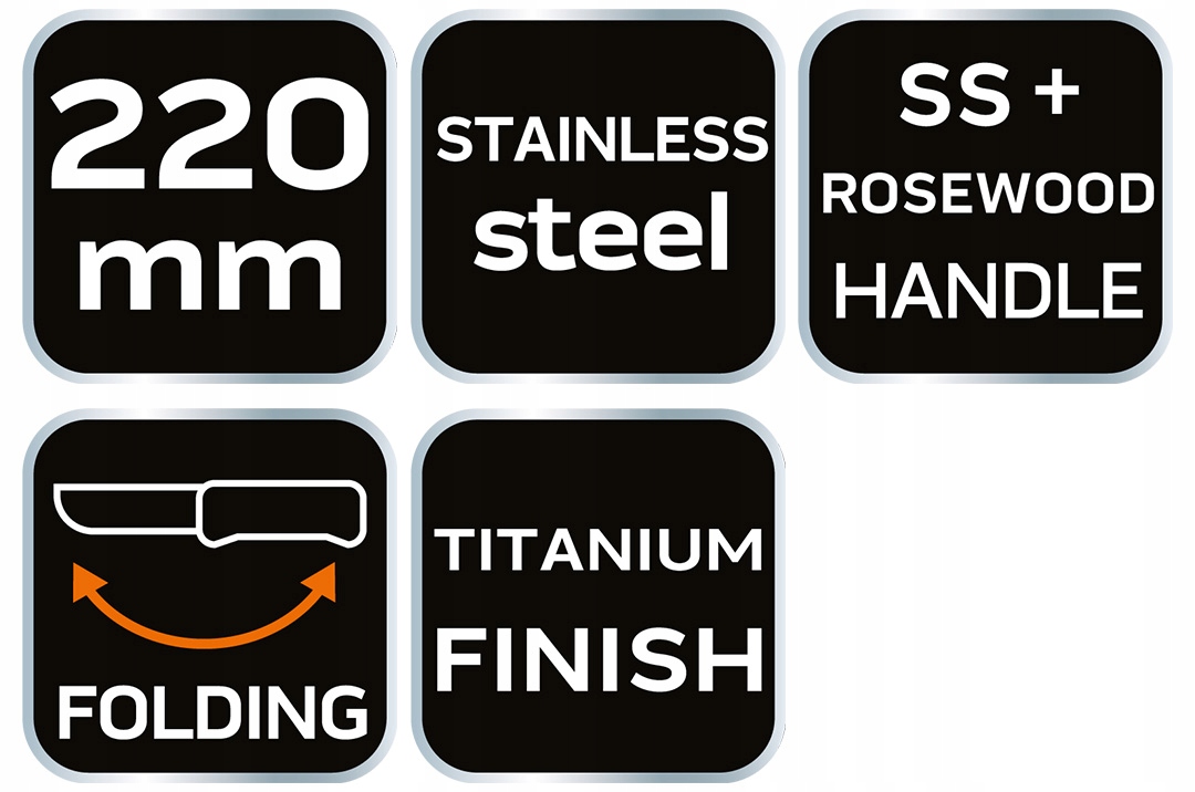 Ніж для виживання NEO (ref. 63-115), складний, загальною довжиною 22 см і лезом 11 см. Він виготовлений з нержавіючої сталі, покритої шаром сатину, а ручка виготовлена з дерева. Ніж має застібку на ремінь, що означає, що ми завжди можемо мати інструмент під рукою.