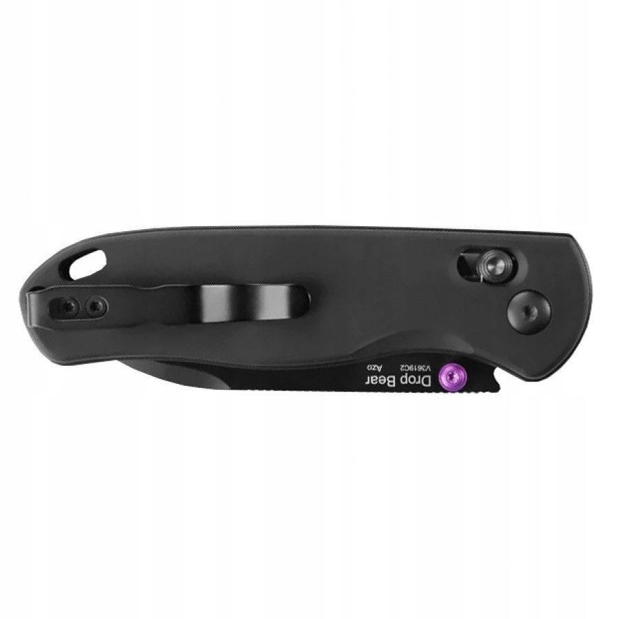 Лезо відкривається двостороннім штифтом, що забезпечує високий комфорт для правшів і лівшів. Фіолетовий дюбель надає всій конструкції сучасний і привабливий вигляд.
