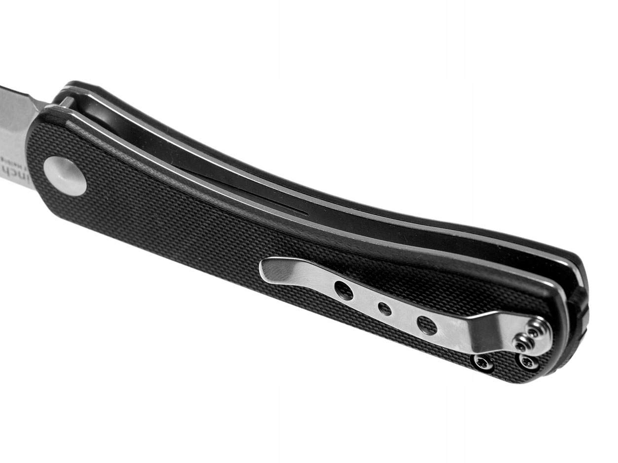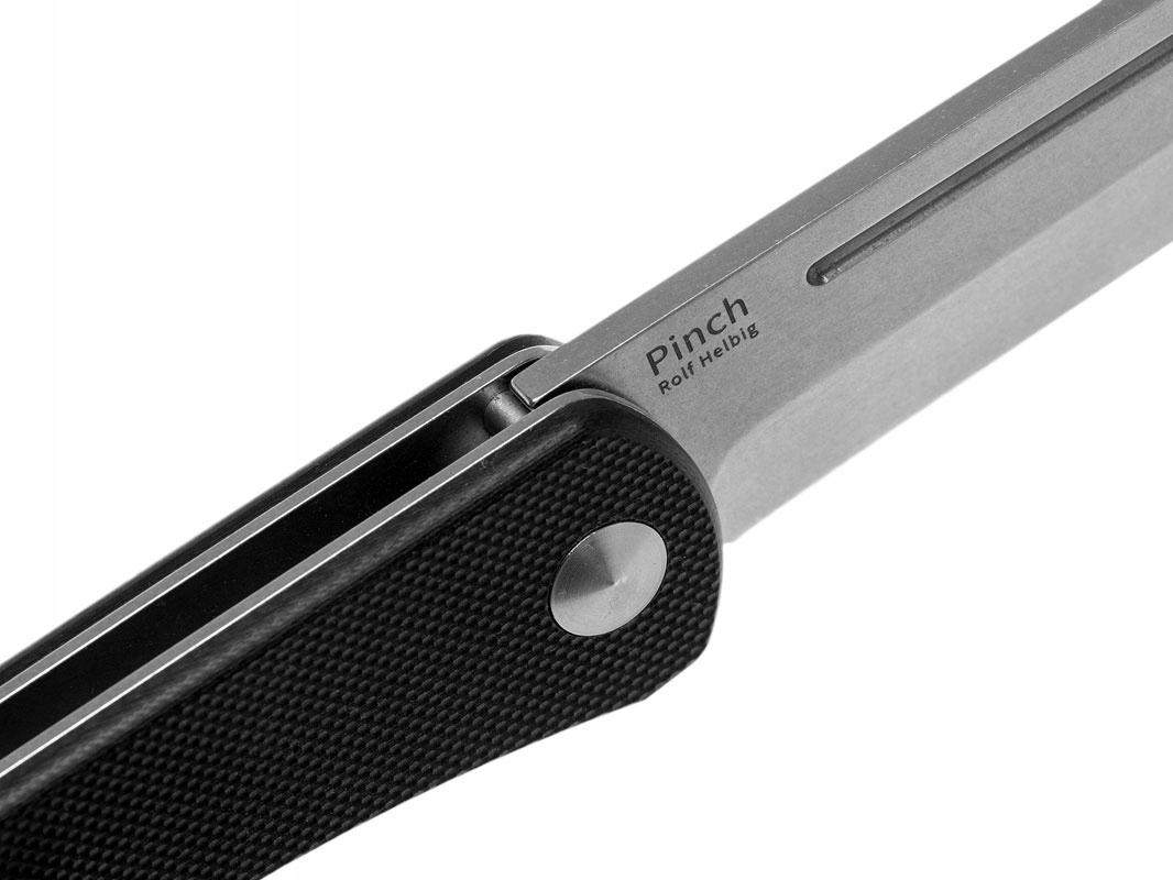 Рукоятка виготовлена з чорного ламінату G-10, з трохи шорсткою текстурою, що забезпечує гарне зчеплення та стабільність захоплення.