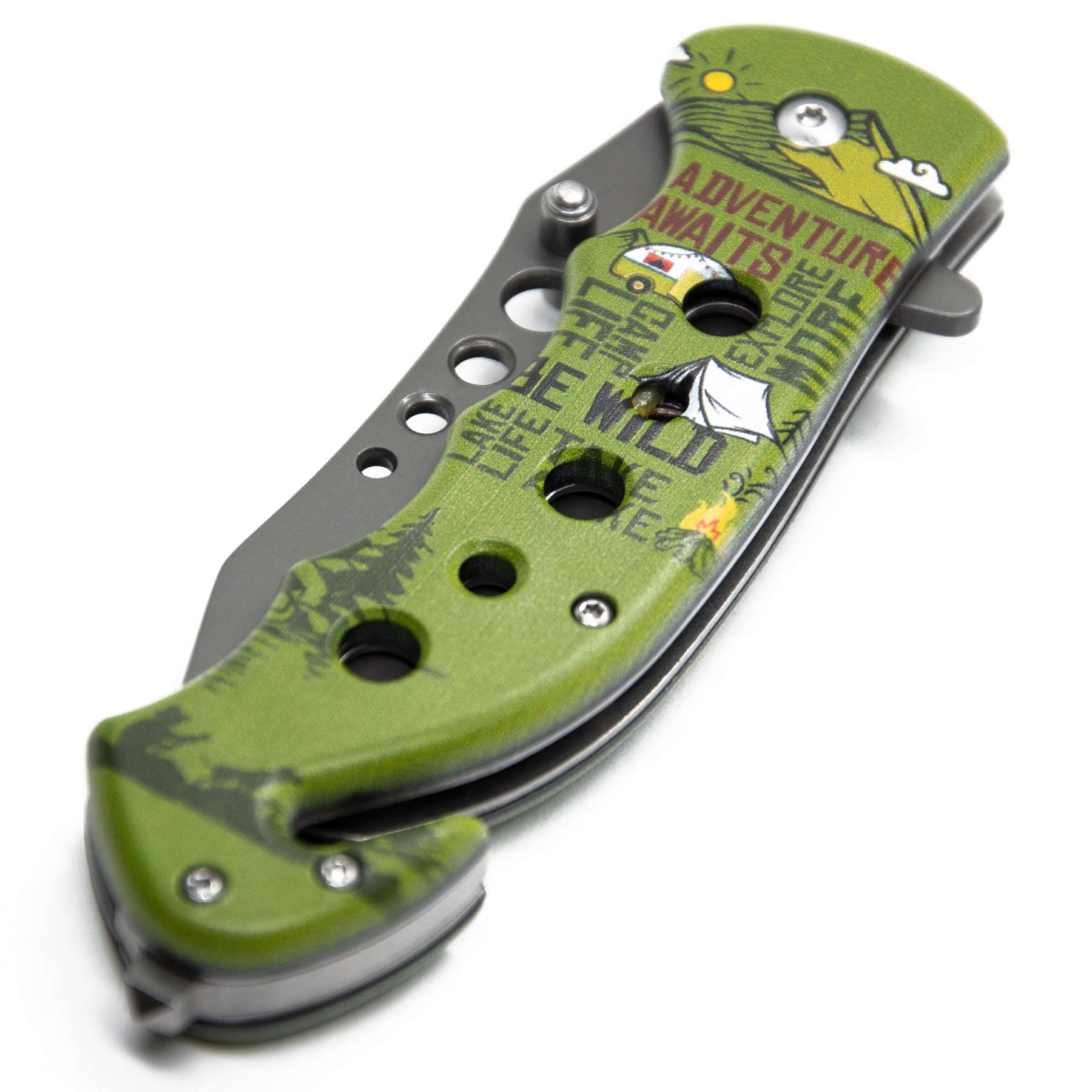 Компактний складаний ніж Kandar із кемпінговим мотивом на зеленій обшивці, ідеально підходить як практичний гаджет, який ідентифікує справжнього шанувальника подорожей на лоно матінки-природи. Ніж зберігається у рятувальника дизайн, який має ряд дуже практичних рішень для будь-якої ситуації, обставин і в будь-якій ситуації, яка може загрожувати нам у лісі.