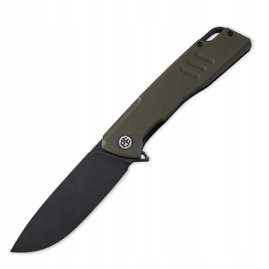 Ручка зеленого G10, встановлена на сталевих вкладишах, забезпечує комфортне зчеплення та довговічність в одному. Ергономічна форма адаптується до руки, а гофрований зворотний простір додає символу. Матеріал G10 стійкий до погодних умов та механічних пошкоджень.