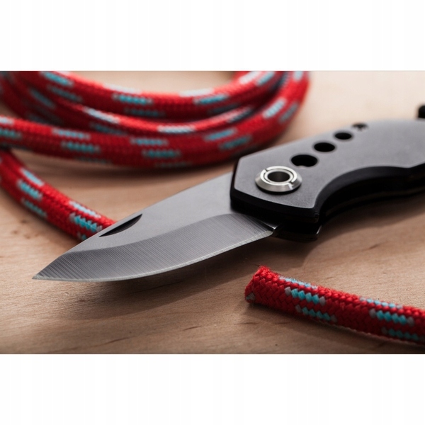 Виготовлений з металу 2CR13, складаний ніж з лезом довжиною 58 мм, замком для леза, розбивачем скла, різаком для ременя безпеки автомобіля та кліпсою для кріплення. Упаковано в чорний поліестеровий чохол.