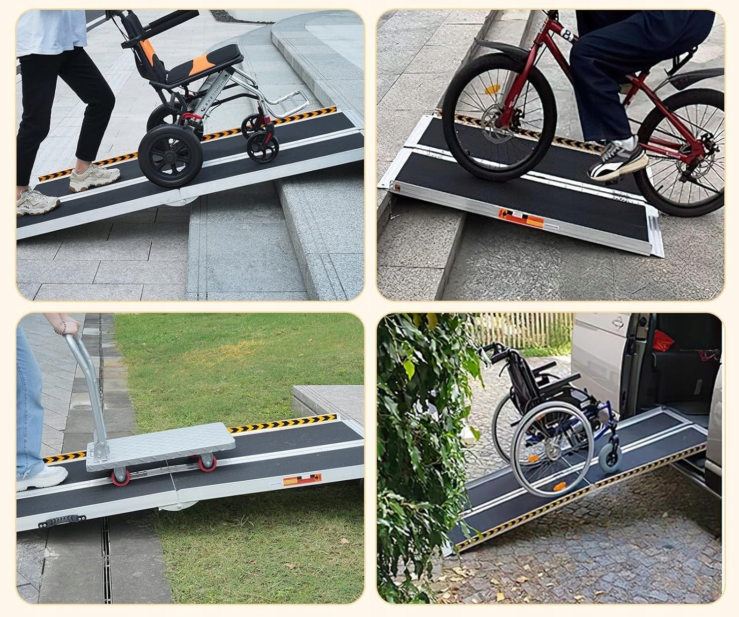 проїжджа дорога, виготовлена з високої якості алюміній забезпечує силу та стабільність навіть при інтенсивному використанні. Максимальне навантаження - 362 кг (рекомендується до 272 кг), що робить його ідеальним для інвалідних візків, прогулянок, скутерів або дитячих колясків. 61 см