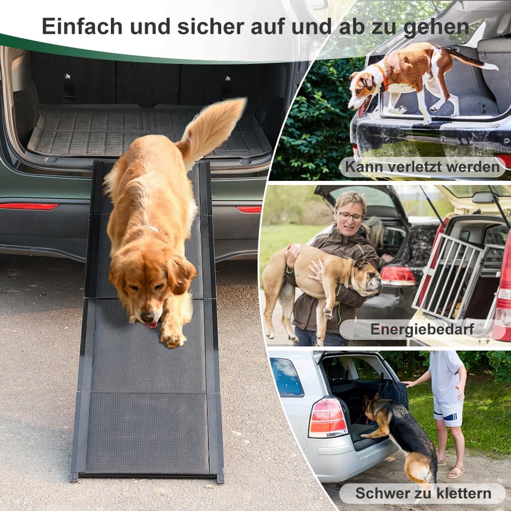 Світла та стабільна конструкція: Виготовлена з високоякісного алюмінію, цей собака -пандус легкий і довговічний. Він має достатньо розкішного, щоб підняти собак до 90 кг, але важить лише 8,1 кг