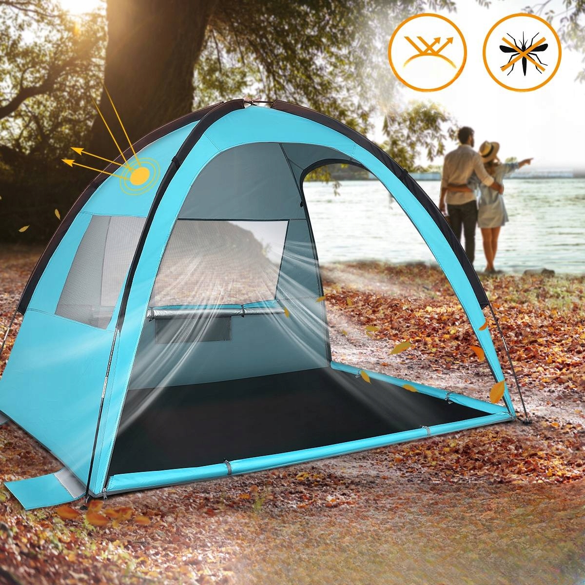 Цей пляжний намет виготовлений з тканини з покриттям проти УВС, він може забезпечити вам та вашій родині з сильним захистом від сонця під час канікул поблизу. І він легкий і може бути складений до невеликого розміру, портативного для подорожі назовні. Завдяки прозорим інструкціям використання, ви можете легко зібрати та демонтувати його.