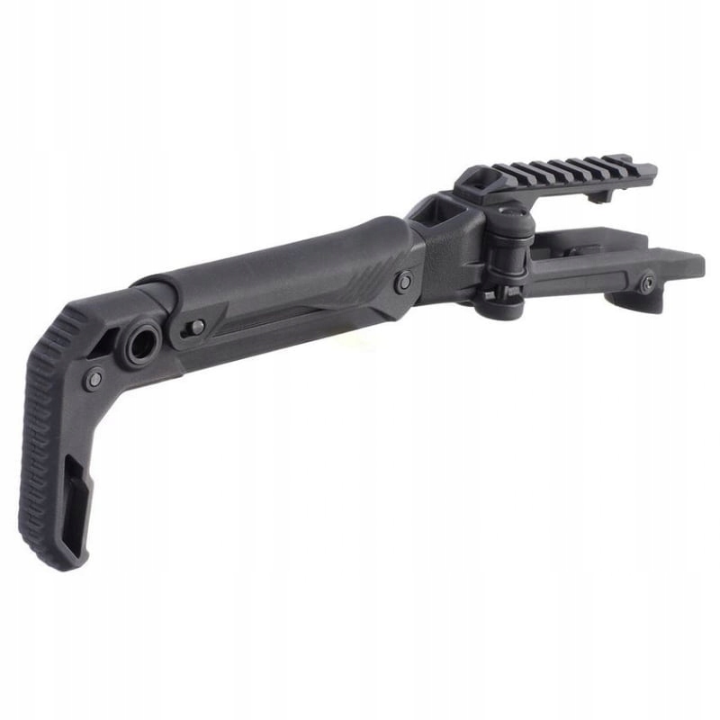Приклад для пістолета AAP01. Він має регульовану довжину рук і висоту щоки. Після складання він залишає простір між її плечем і реплікою, щоб її можна було вставити в кобуру. Це дозволяє складати й розкладати його однією рукою.