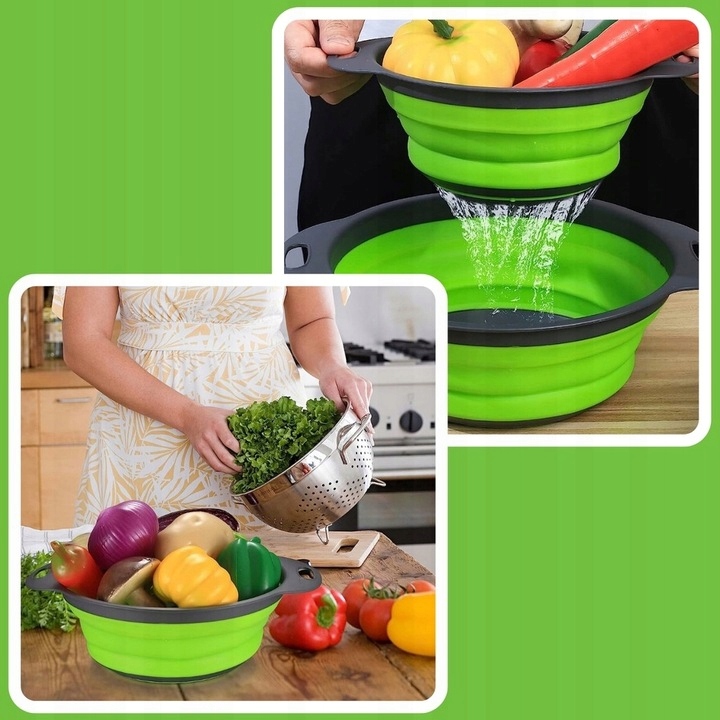 силіконом, складання чіп із сучасним дизайном! Практичний друшляк присвячений кухні для багатьох заходів, промивання свіжих фруктів та овочів, переповнене варені овочі, рис, макарони. інструмент, необхідний на кожній кухні.