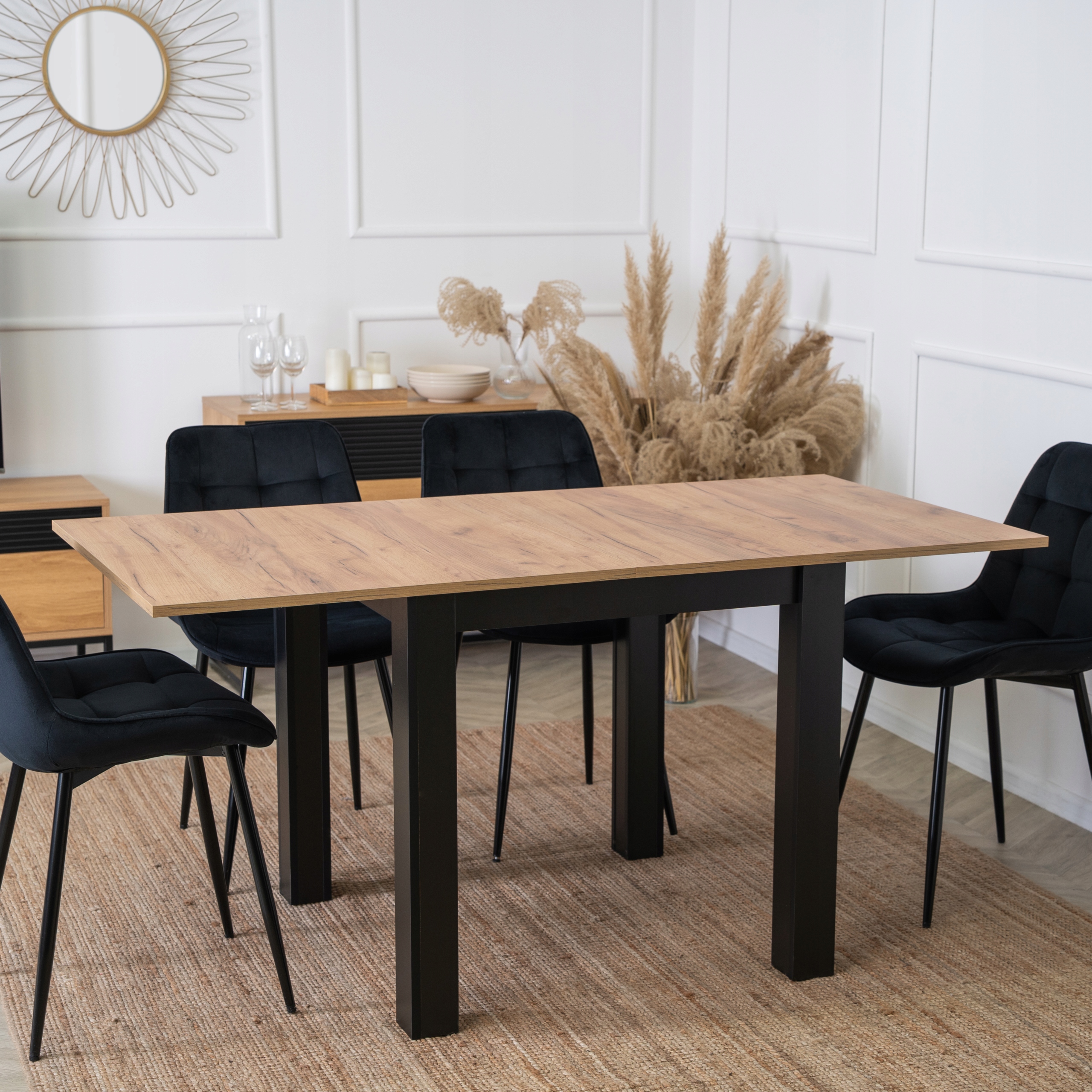 ⭐ його кольори - поєднання теплої деревини та чорної сучасності.