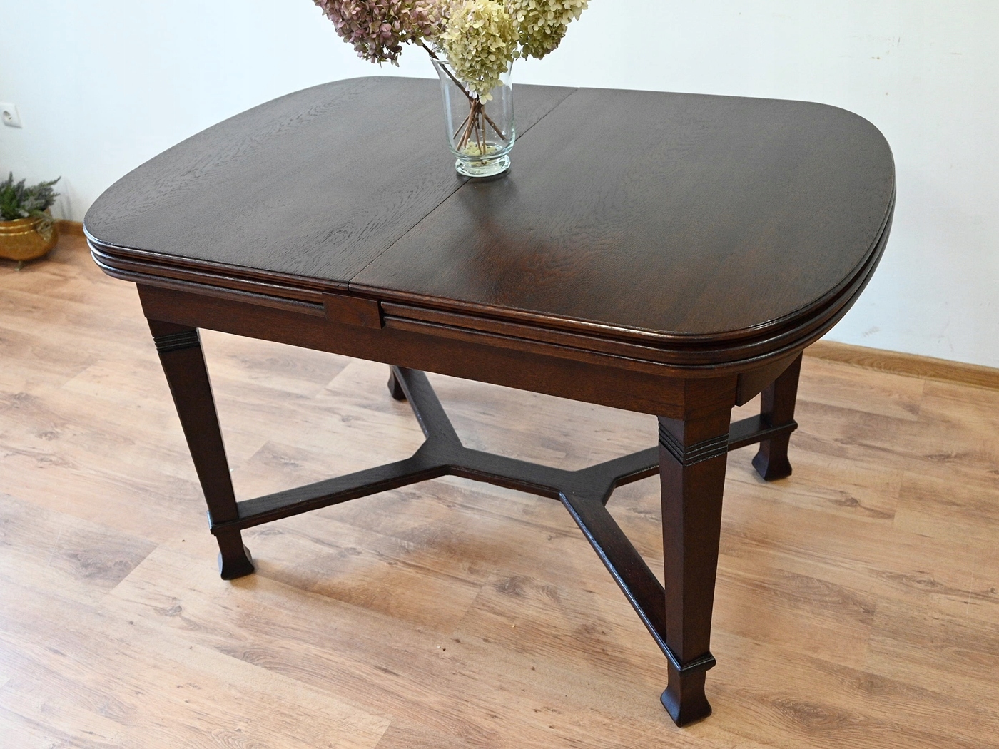 Дуже хороший стан. Меблі, підготовлені до використання. Оновлений. Меблі вже мають свої роки та сліди минулого часу, що не впливає на його естетичний прийом, вони є свідченням справжності меблів. Стіл можна відразу поставити в квартиру.