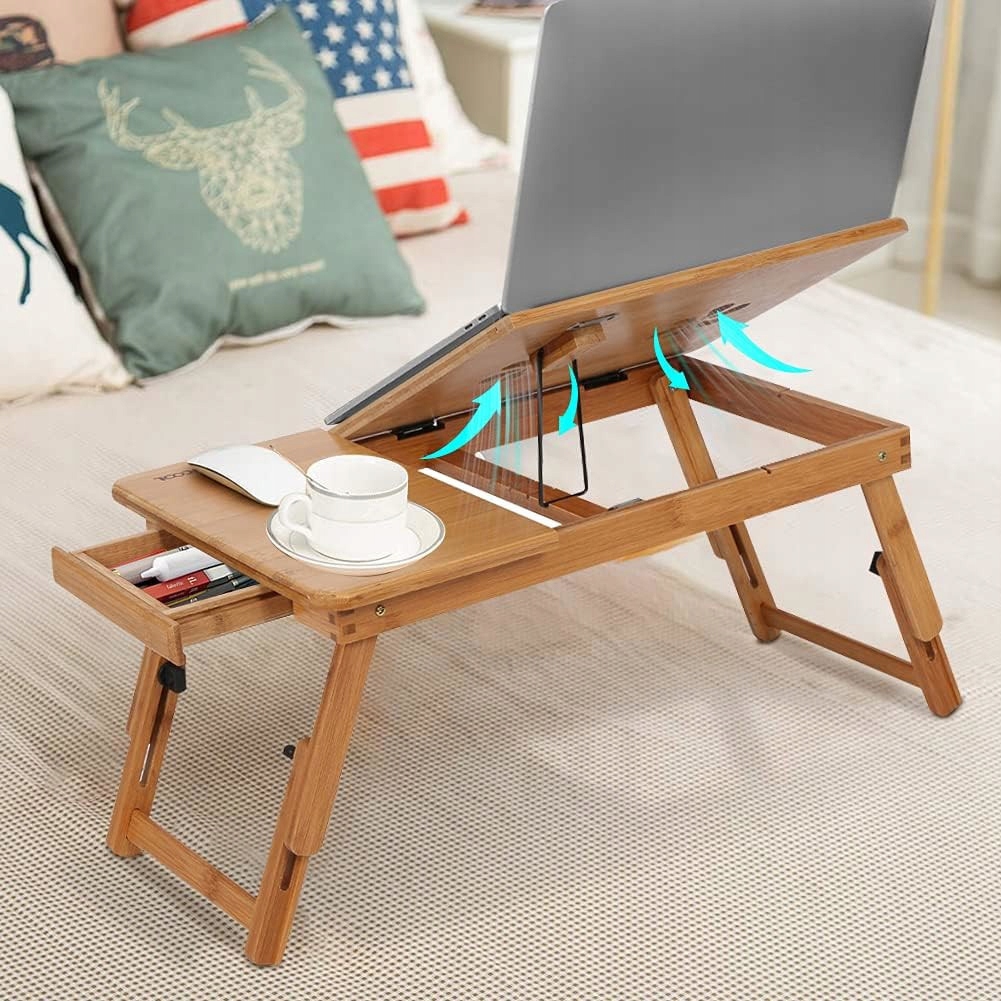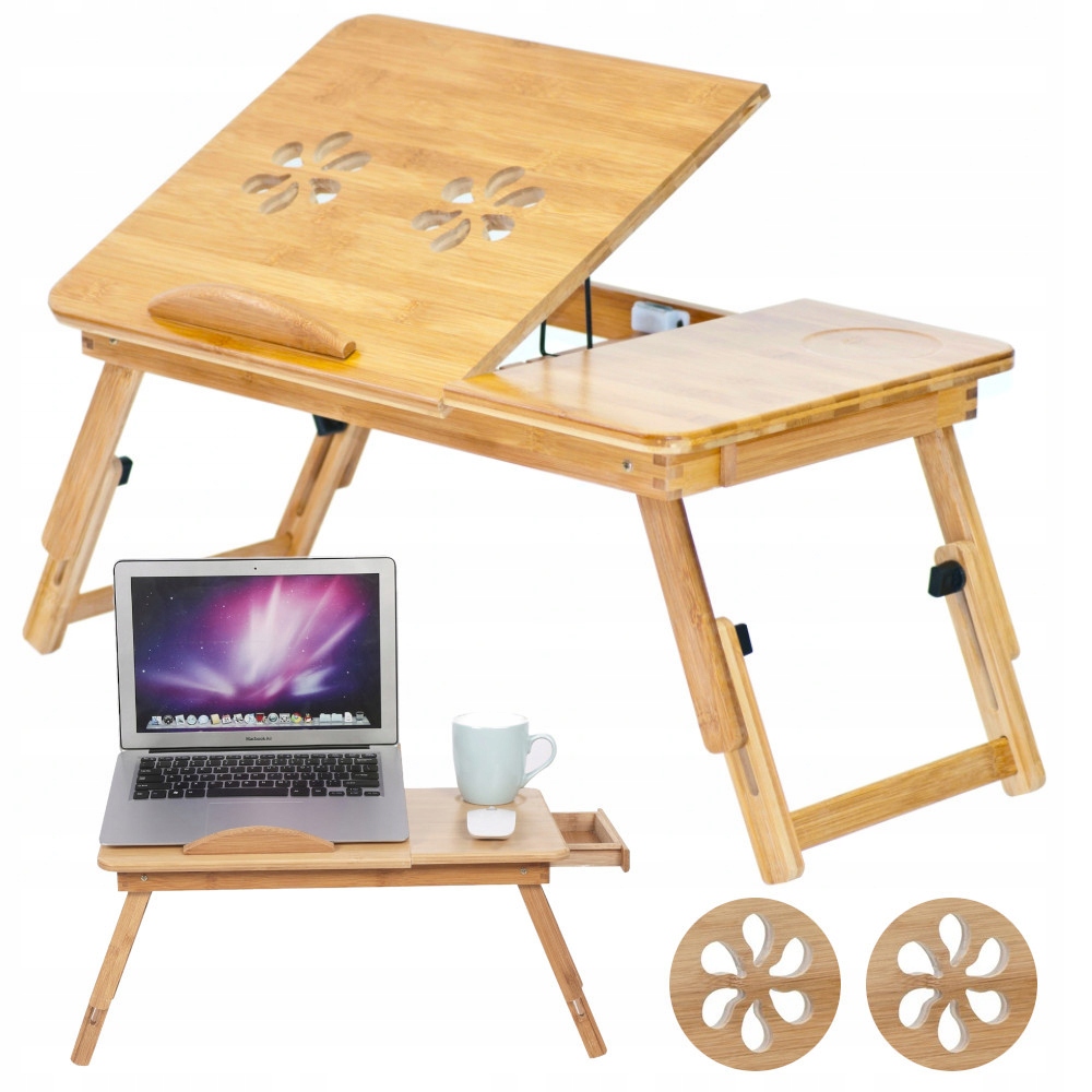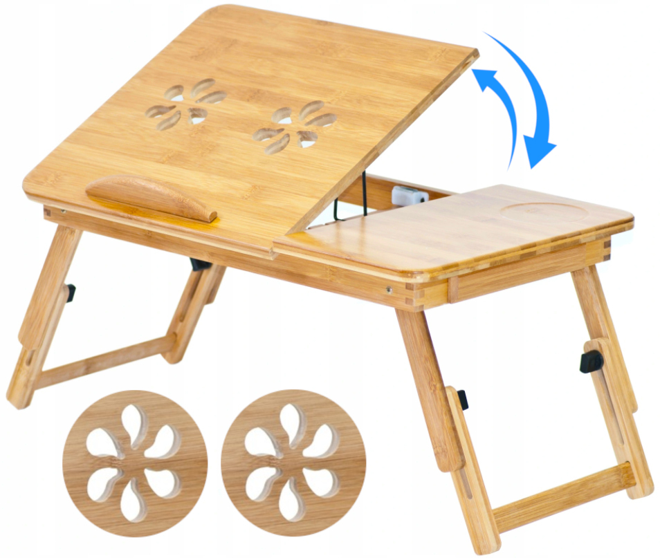 Стіл для ноутбука, який ми пропонуємо, має регулювання висоти та 4 рівні нахилу стільниці, тому ви можете адаптувати його під себе та свої поточні потреби. Отвори, вирізані в стільниці, посилять потік повітря з-під нагрітого пристрою.