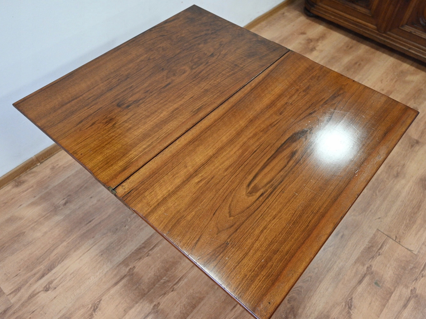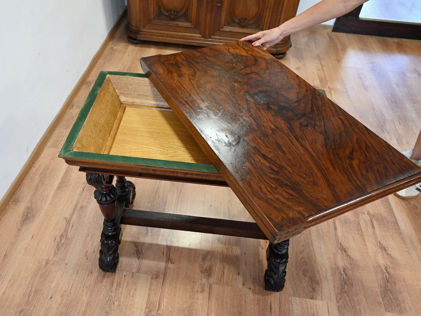 виготовляються повністю з дерева, поважного шпони. Меблі, підготовлені до використання. Оновлений. Меблі вже мають свої роки та сліди минулого часу, що не впливає на його естетичний прийом, вони є свідченням справжності меблів. Стіл можна відразу поставити в квартиру.