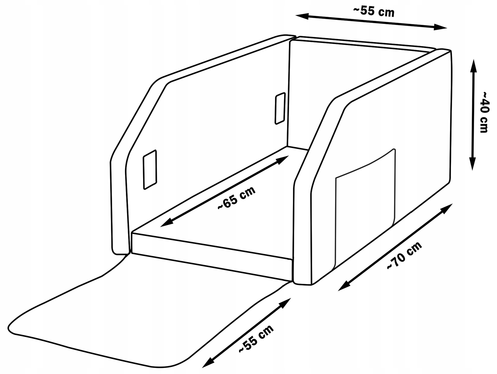 4Регульована стрічка дозволяє прості та безпечні складання транспортера в машині. Його слід проводити через два тунелі всередині транспортера, а потім накрити навколо задньої частини заднього сидіння і відрегулювати довжину.