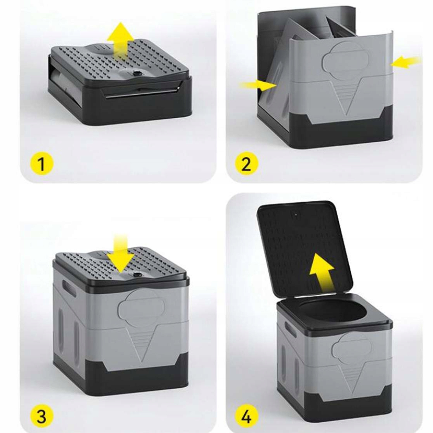 🚽 Його можна використовувати не лише як автомобільний чи кемпінговий туалет, а й як невеликий табурет, смітник, відсік для речей, внутрішній туалет, відро для блювоти для вагітних. Ідеально підходить для кемпінгу, активного відпочинку, далеких подорожей тощо.