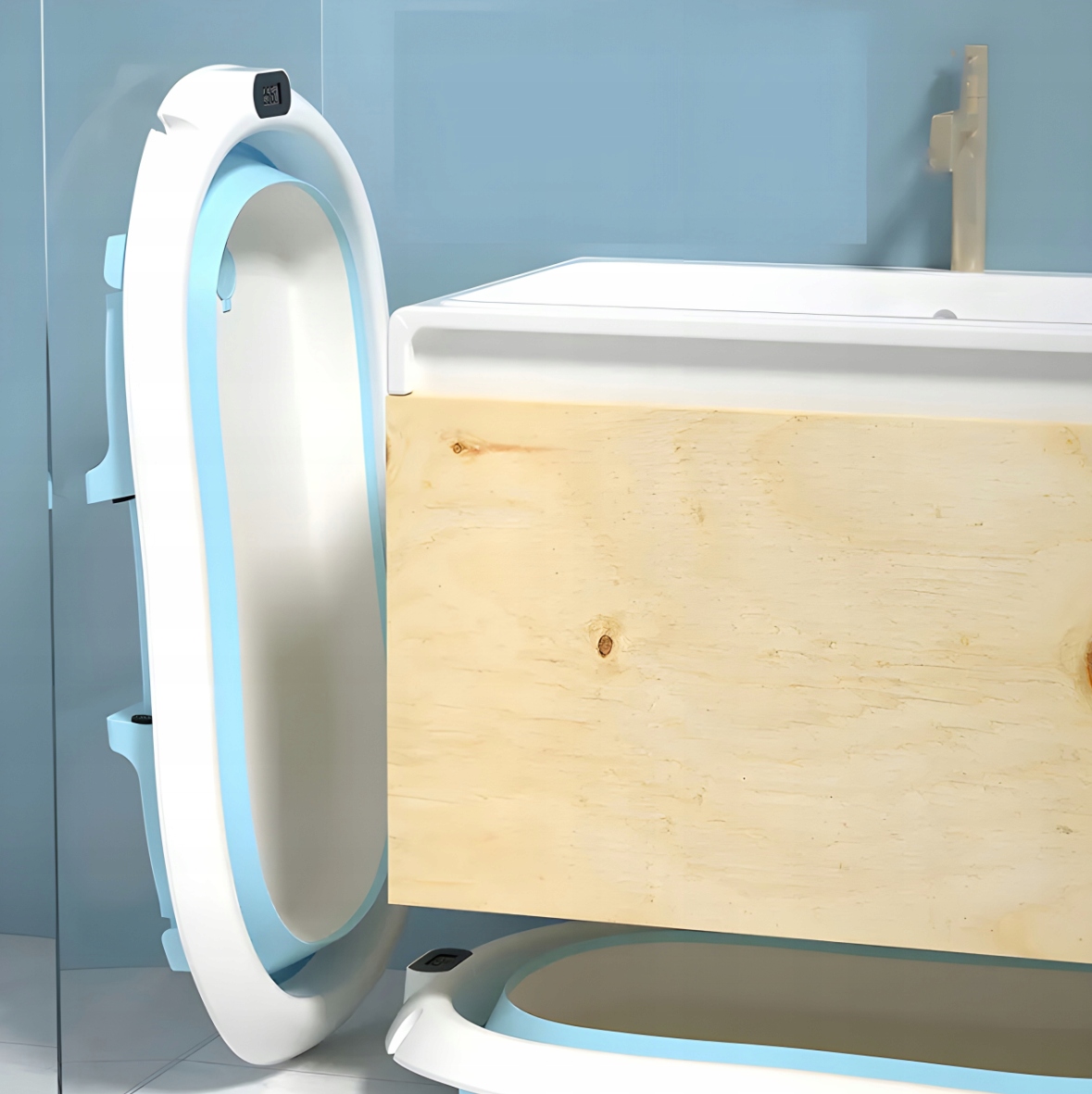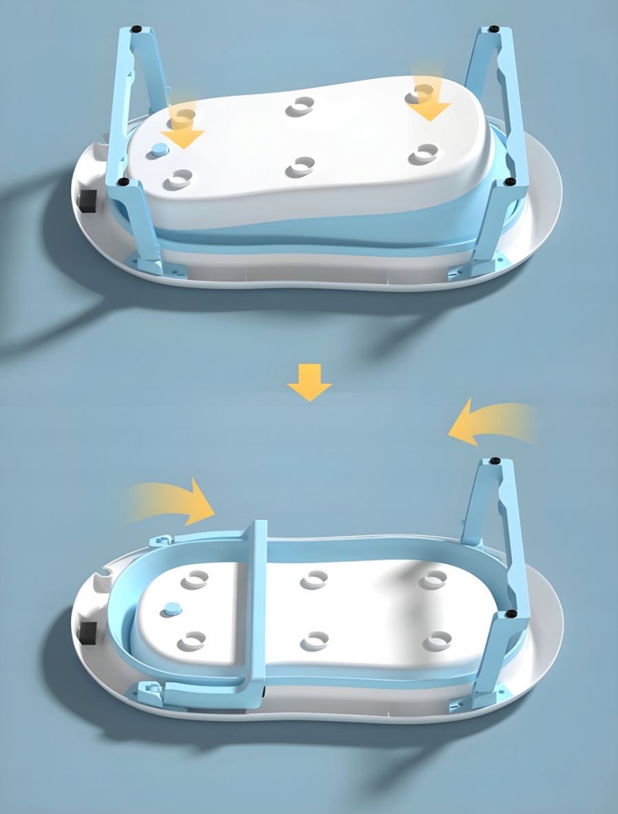 Інноваційним рішенням є силіконові стінки, які дозволяють складати ванну. У складеному вигляді ванна має висоту всього 10 см, що значно полегшує її зберігання та транспортування. Це робить його ідеальним, наприклад, для подорожей!