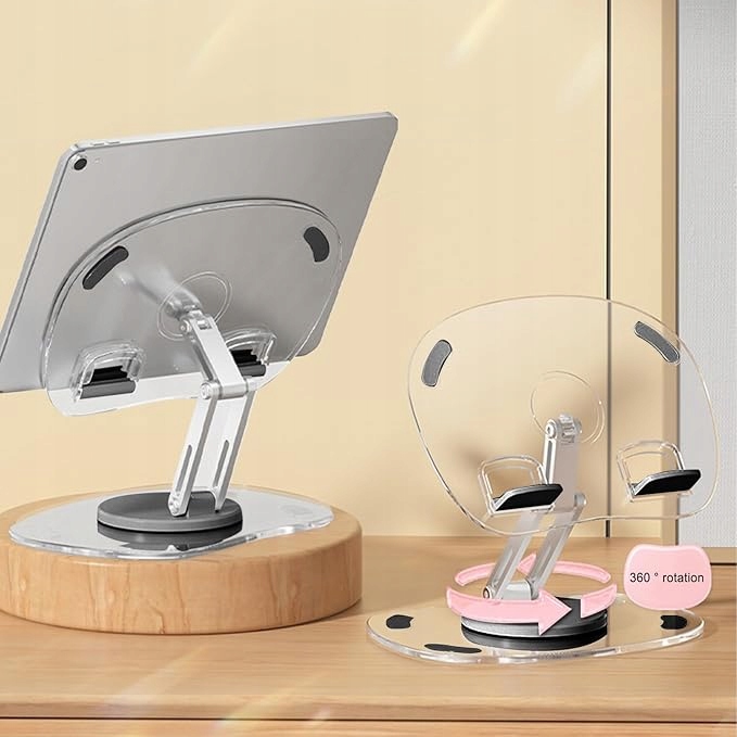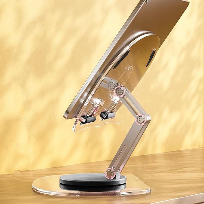 - Три -осі підставка: три вісь, прозорий дизайн нашої підставки для складання телефонів дозволяє вам насолоджуватися комфортним переглядом під будь -яким кутом. Завдяки 360 градусів відрегулюйте кут перегляду до своїх уподобань та використовуйте його на багатьох пристроях.