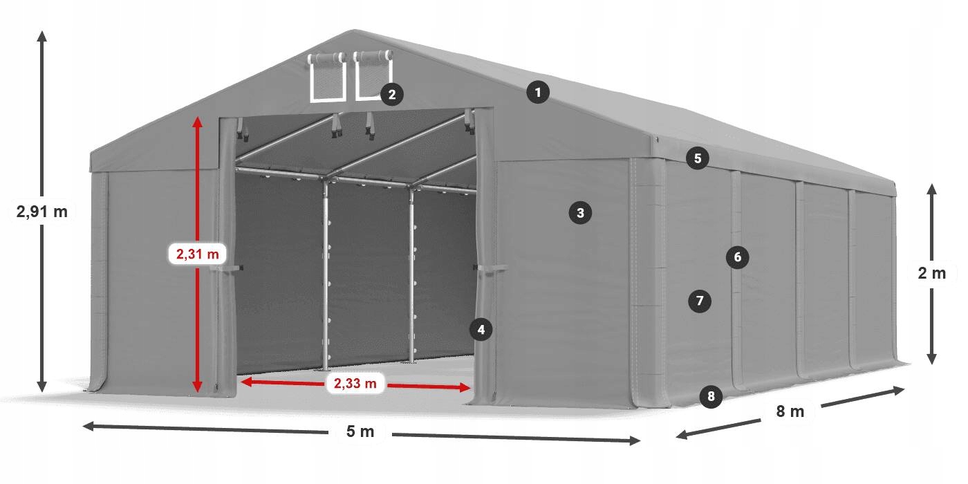 5 м x 8 м x 2/2,91 м