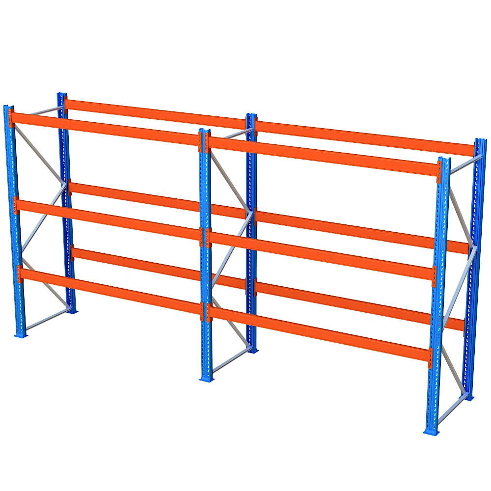 Полкиця складається з 2секцій з робочою довжиною 270 см кожна . Стелаж має 4 рівня (включаючи підлогу), що дає загалом місце для 24 піддонів. Висота рівнів регулюється вільно. Модульна конструкція - ви можете додати потрібну кількість рівнів і цілих секцій, створюючи довгий ряд полиць.