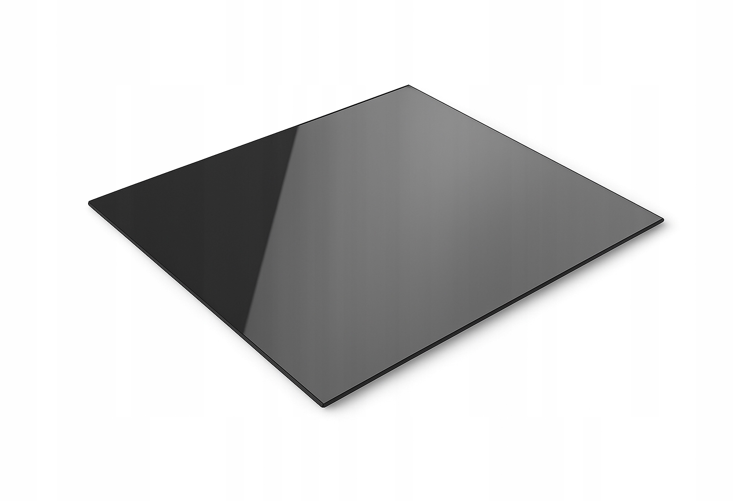 Глянцеве чорне скло ідеально вписується в дизайн інтер'єру. Товщина листа 5 мм забезпечує повну функціональність і стійкість до навантажень. Краї були затуплені та відполіровані, скло можна використовувати як під каміном, так і перед ним, не боячись порізів чи тріщин.