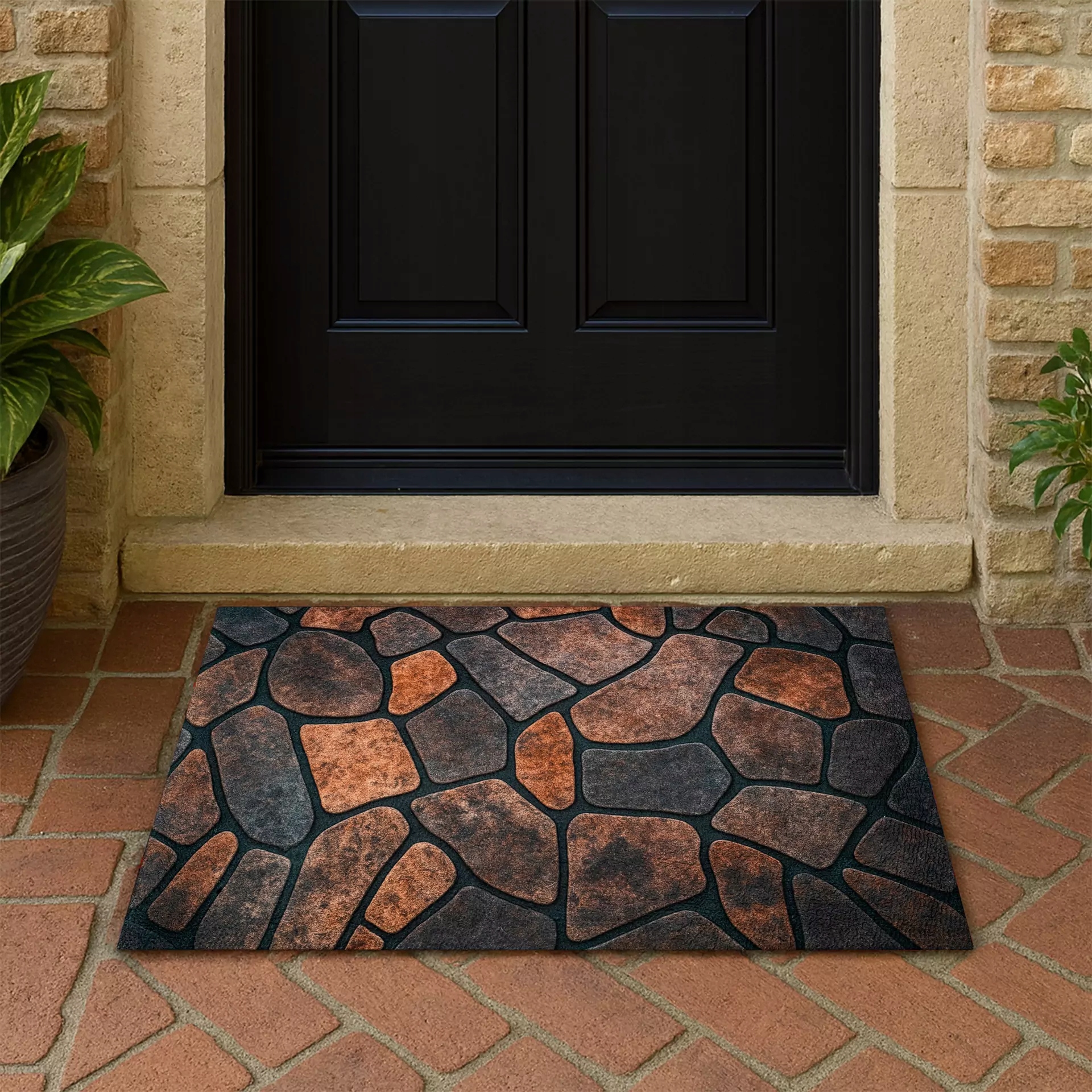 Верх виготовлений з поліефірного волокна з чітким, естетичним принтом - завдяки чому килимок є не тільки практичним, але й елементом декору. Знизу є гума проти ковзання, яка міцно утримує землю та запобігає зміщенню килимка під час використання.