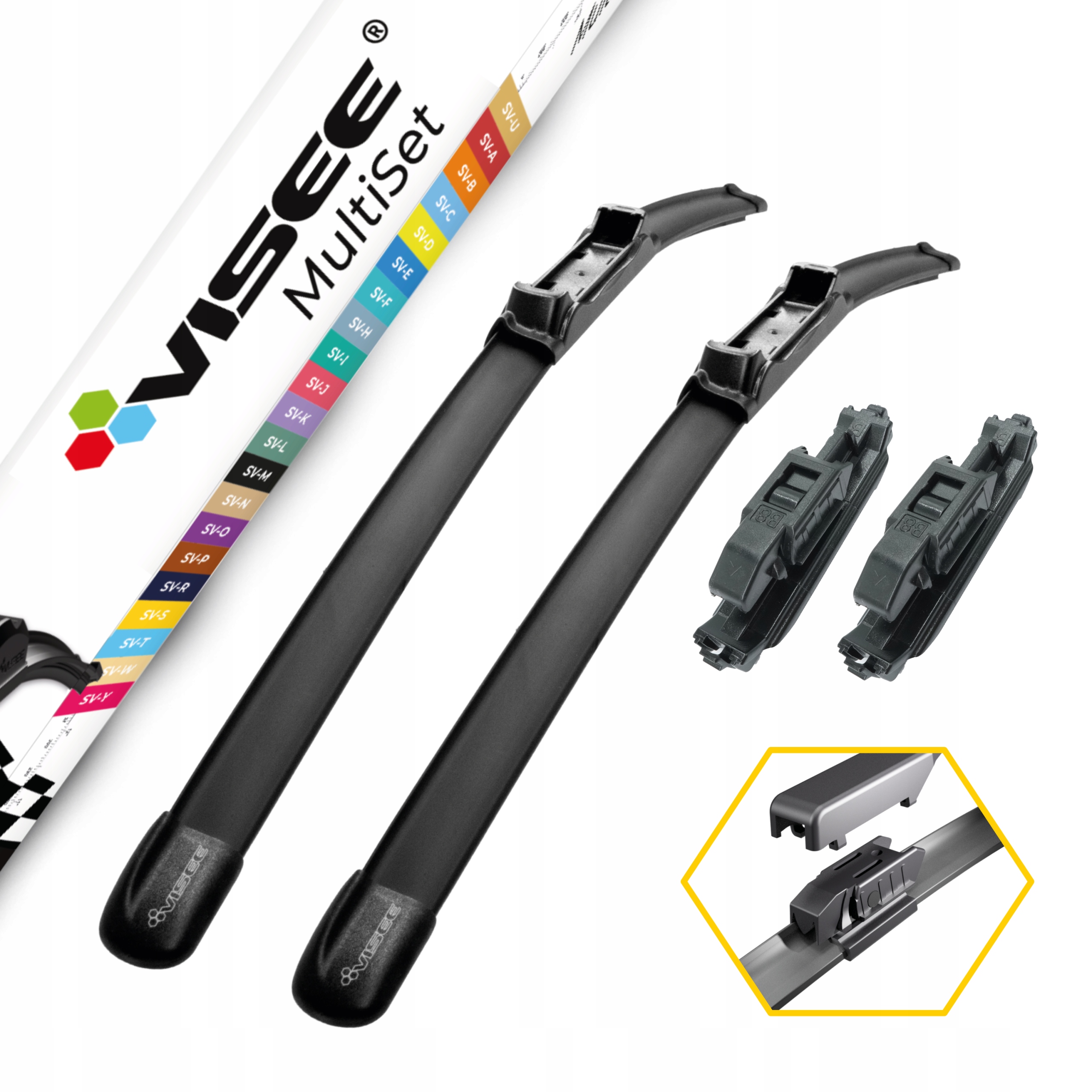 Відкрийте для себе революцію у світі автомобільних склоочисників із VISEE MULTISET – плоскі склоочисники з адаптерами SmartClick нового покоління! Не тільки ваша безпека, а також стиль і елегантність. Наші склоочисники створені для вимогливих водіїв, які цінують якість, комфорт і ефективність.