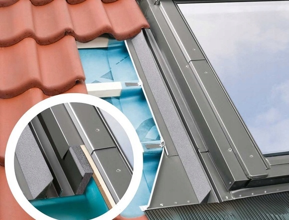 Новий універсальний ущільнювач EHV AT-THERMO з додатковою теплоізоляцією є чудовим системним рішенням, яке гарантує щільне та «тепле» з’єднання вікна з поверхнею даху. Термоущільнювач EH_-AT Thermo дозволяє утеплювати мансардні вікна над рівнем лат. З внутрішньої сторони наклеєний гнучкий ізоляційний матеріал, який щільно прилягає до віконної рами, створюючи таким чином теплоізоляційний каркас після монтажу. Теплоізоляційний матеріал характеризується дуже хорошими параметрами (дуже хороший коефіцієнт λ).