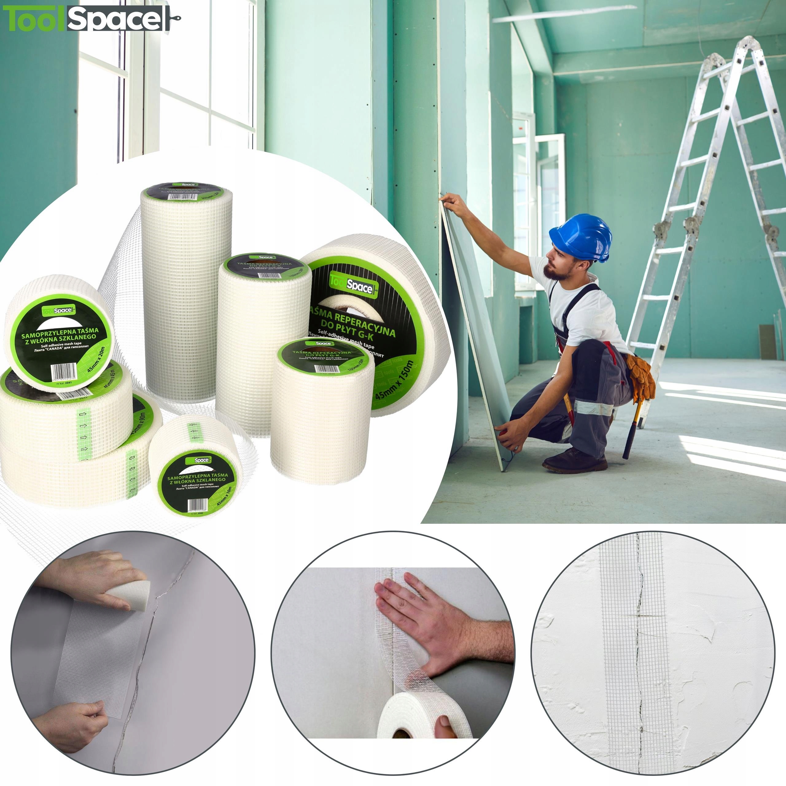 Само -адгезивна ремонтована/склопластикова стрічка з інструментами Space® склопластику відрізняється високою міцністю, хорошою адгезією до штукатурки та ефективності в маскуванні суглобів, тріщин та дефектів.