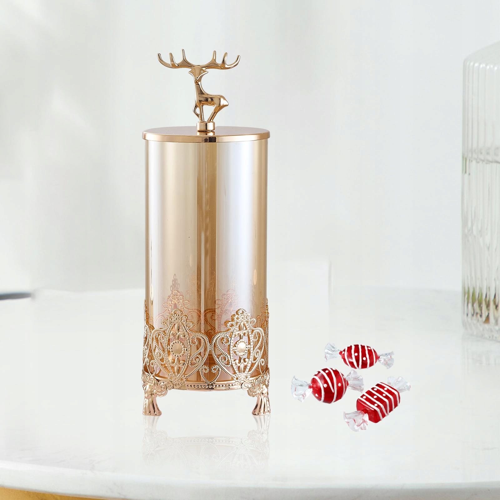 4 4 Ідеально підходить для дизайну будинку, прикраси для центру столу або весільних церемоній. 4[Багатофункціональний] харчовий контейнер - це універсальний контейнер для зберігання, що підходить для зберігання цукерки, сухофруктів, як декоративний акцент на полицях під час весілля, вечірок чи особливих випадків. Він також може зберігати пензлик для макіяжу.