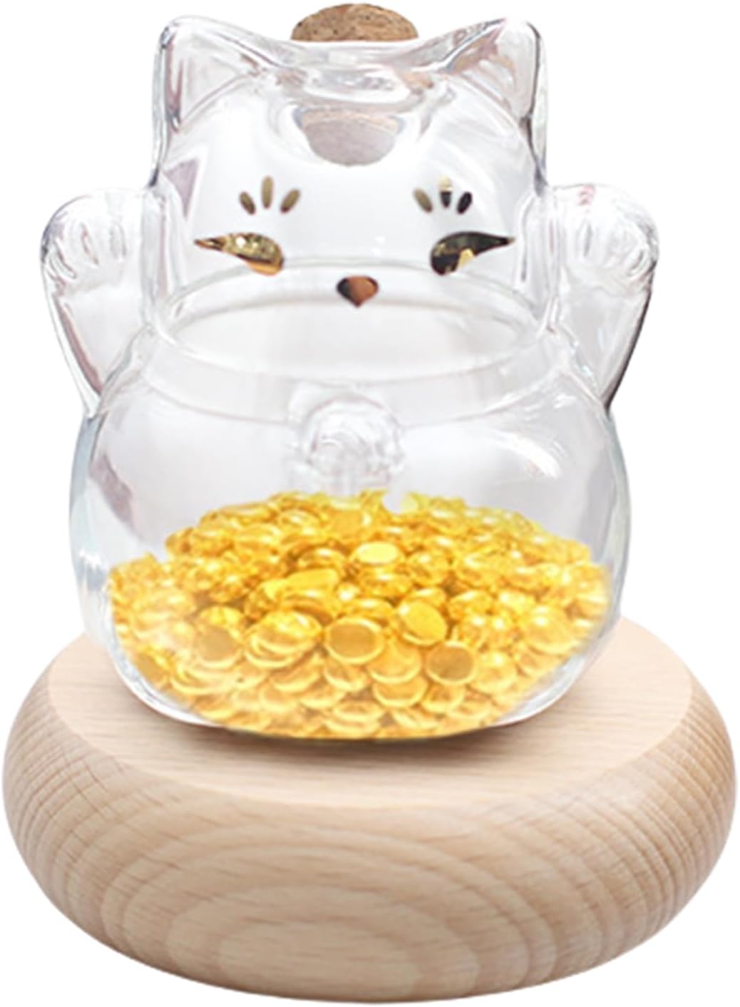 Скляна банка для монет, прозора банка для зберігання золотих бобів у формі кота, маленька декоративна