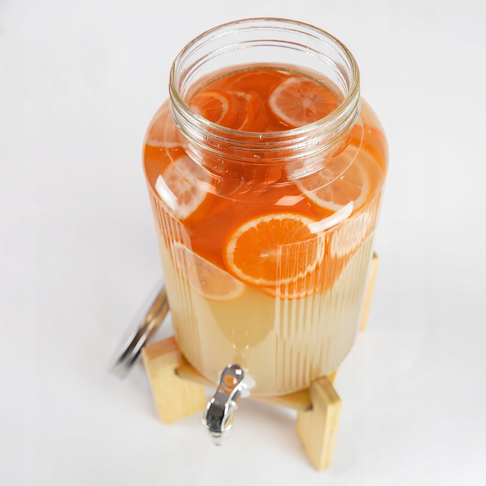 Декоративна банка з краном на дерев'яній підставці об'ємом 5,5 л. ідеальне рішення для тих, хто шукає практичний і стильний спосіб зберігання та подачі улюблених напоїв. Забудьте про незручне наливання і розливання - завдяки зручному крану подача напоїв стає приємною і безпроблемною. Навіть діти зможуть насолоджуватися вмістом самостійно без проблем! Крім того, елегантний дизайн і якісне виготовлення роблять нашу скляну банку прикрасою та привабливістю для будь-якої вечірки. Не чекайте більше - замовляйте зараз і підкресліть свій смак і стиль завдяки скляній банці з краном на дерев'яній підставці!