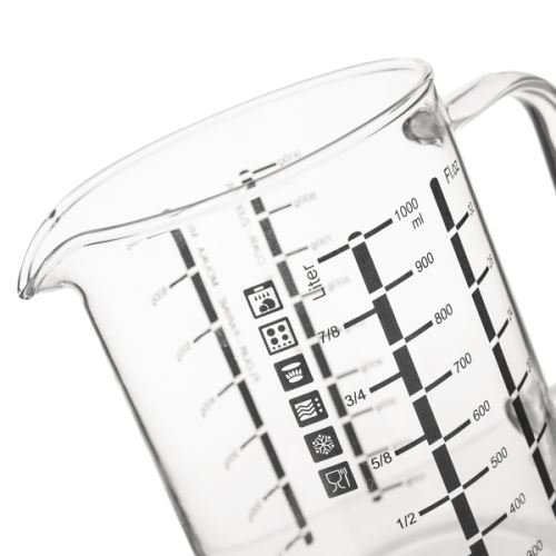 Завдяки чіткій позначці об’єму (до 1000 мл) глечик ідеально підходить для приготування їжі та випічки. Стійкі відбитки не стираються навіть після багаторазового миття в посудомийній машині - тому це також чудова мерна чашка для їжі в ресторанах або кондитерських.