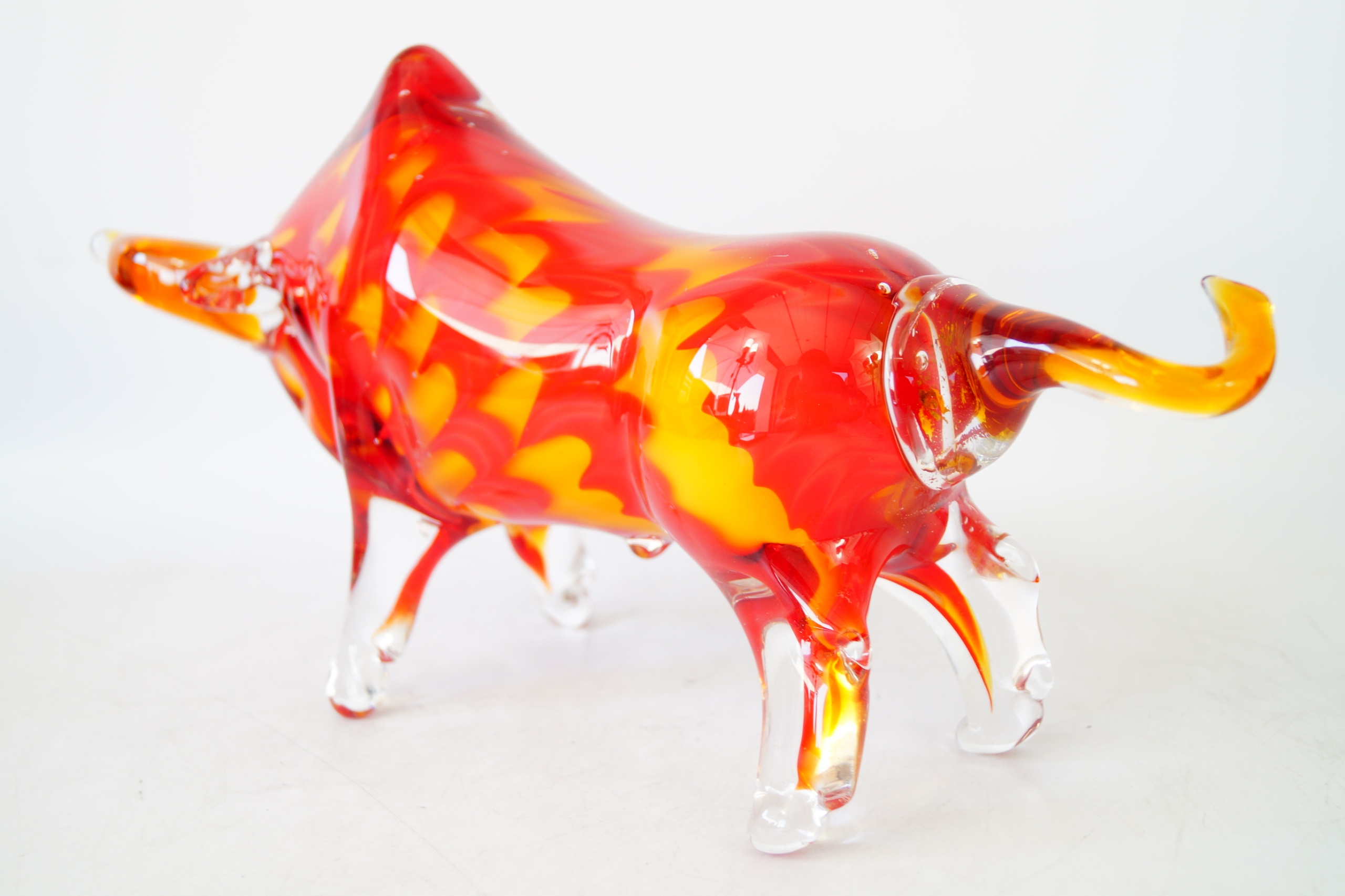 Скляна фігура «Бик з Уолл-стріт», червоний бик у муранському стилі