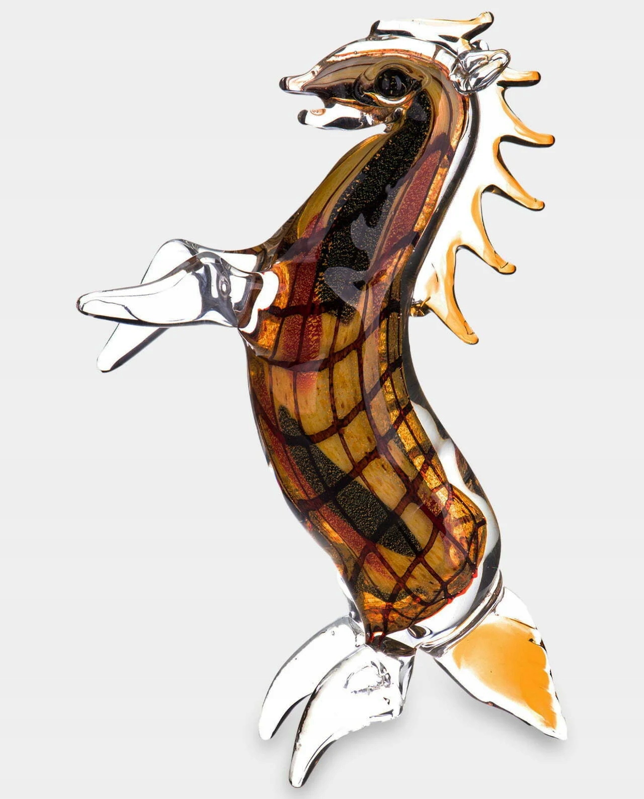 Ексклюзивна скляна фігурка, виготовлена вручну в стилі венеціанського скла Мурано, що зображує коня. Ця скляна скульптура зроблена дуже точно, з увагою до найменших деталей. Це справляє величезне естетичне враження і має позачасовий стиль. Підходить для багатьох інтер'єрів. Ідеальний подарунок для любителів коней.