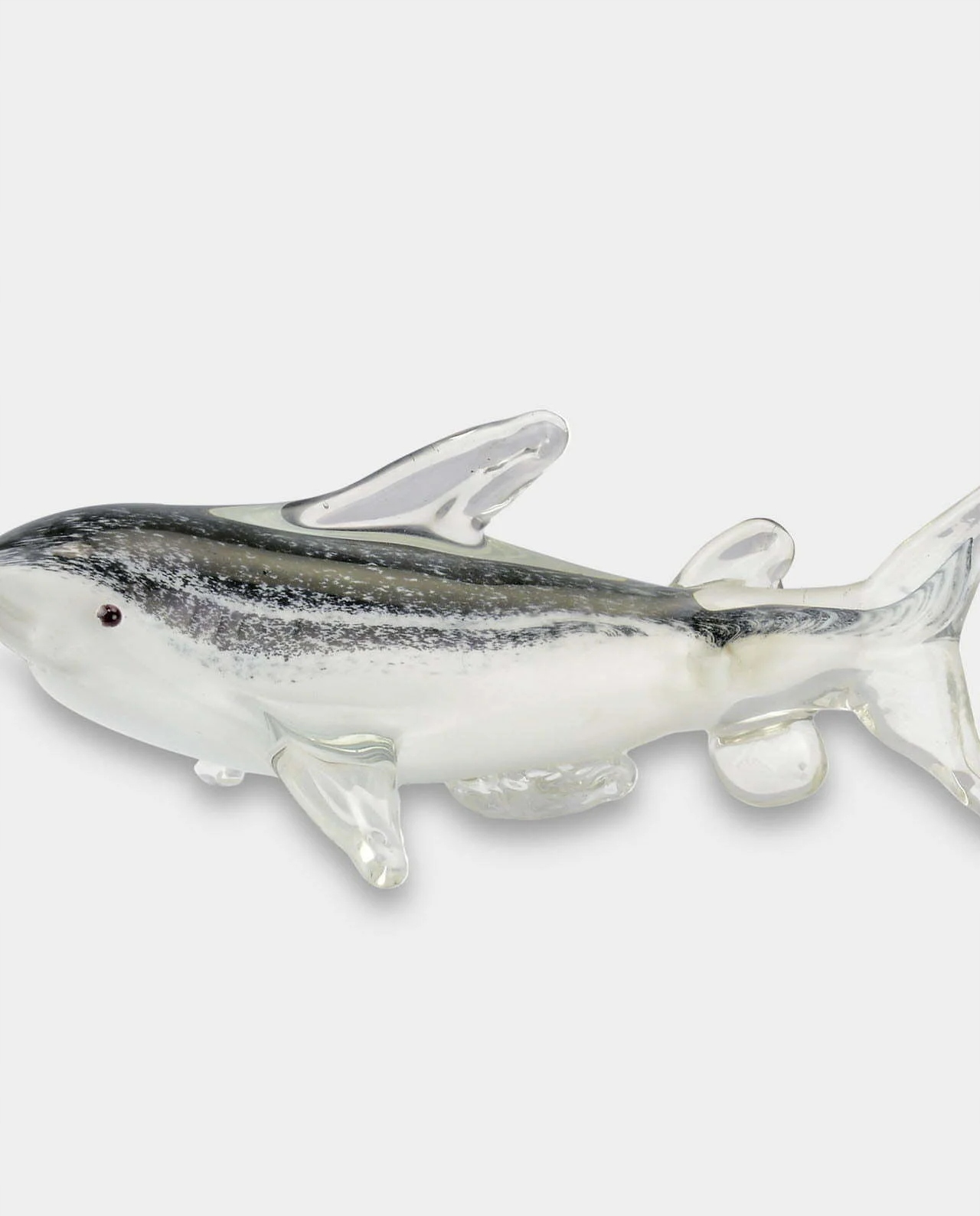 Ексклюзивна скляна фігурка, виготовлена вручну в стилі венеціанського скла Мурано, що зображує акулу. Ця скляна скульптура зроблена дуже точно, з увагою до найменших деталей. Це справляє величезне естетичне враження і має позачасовий стиль. Підходить для багатьох інтер'єрів. Ідеальний подарунок для моряка або любителя клімату води.