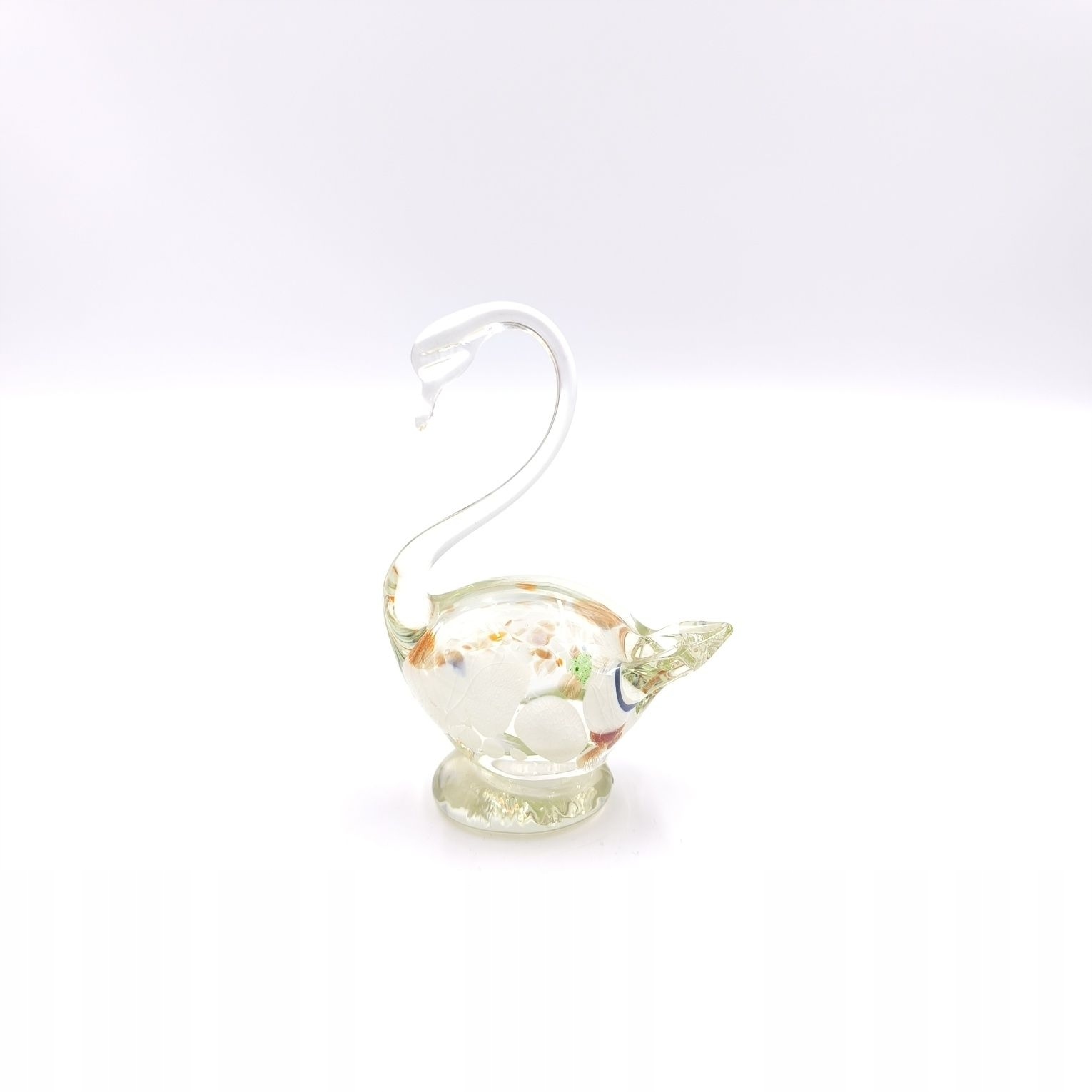 Скляна фігурка із зображенням лебедя зі стрункою фігурою та елегантно вигнутою шиєю. Ніжні барвисті прикраси, вбудовані в скло, додають чарівності та неповторного характеру всьому. Статуетка чудово підійде як прикраса інтер'єру, предмет колекціонування або подарунок для любителів унікального художнього скла.