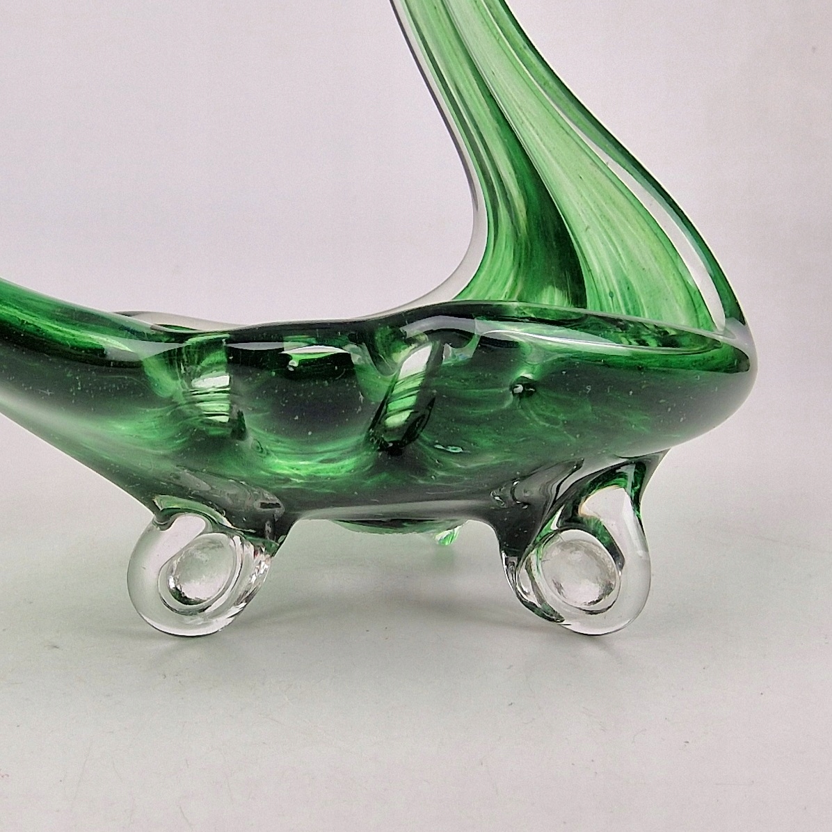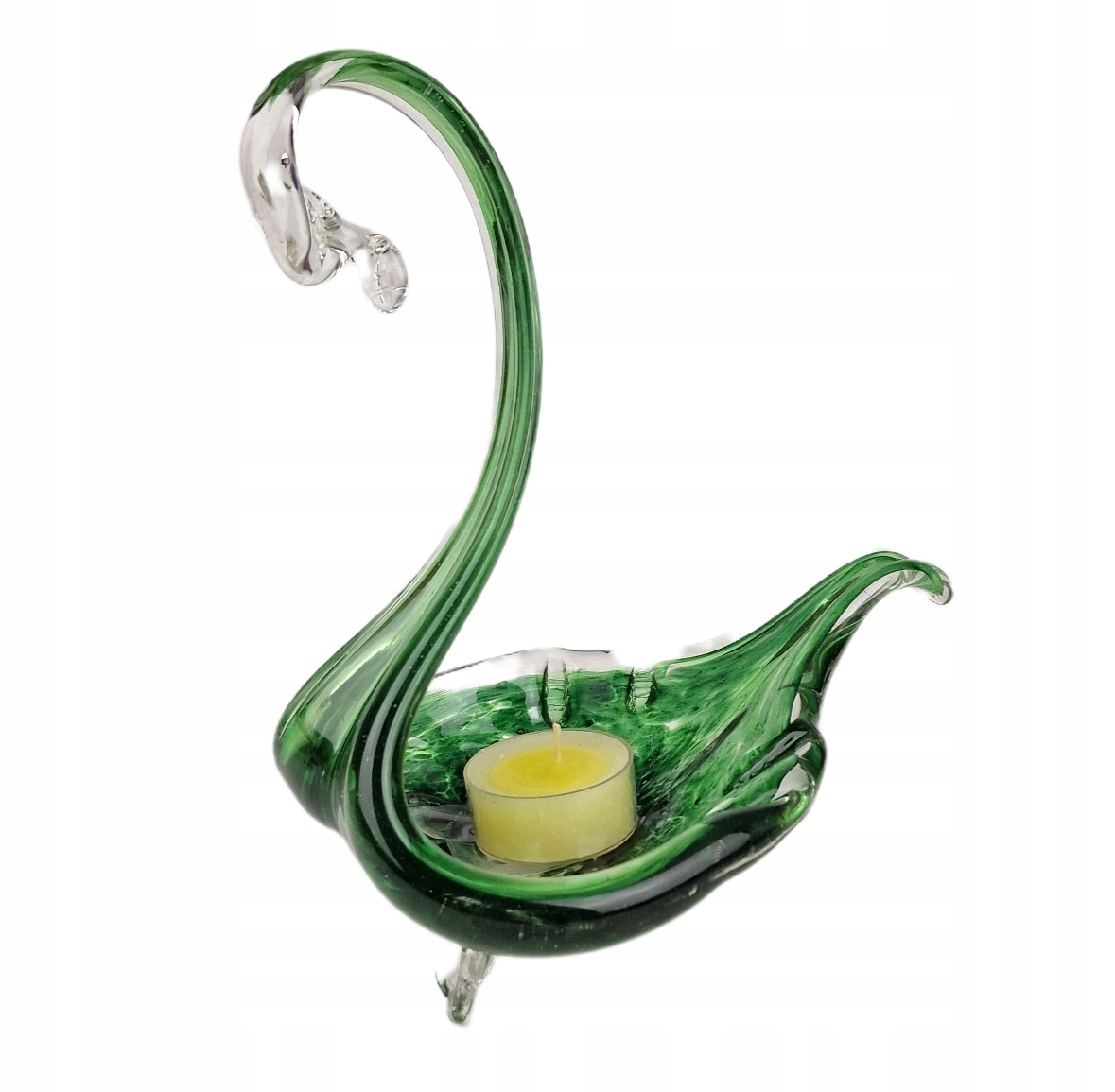 СКЛЯНА ФІГУРКА ЛЕБІДЬ / ПІДСВІЧНИК / ПОЛЬСЬКЕ СКЛО PRL