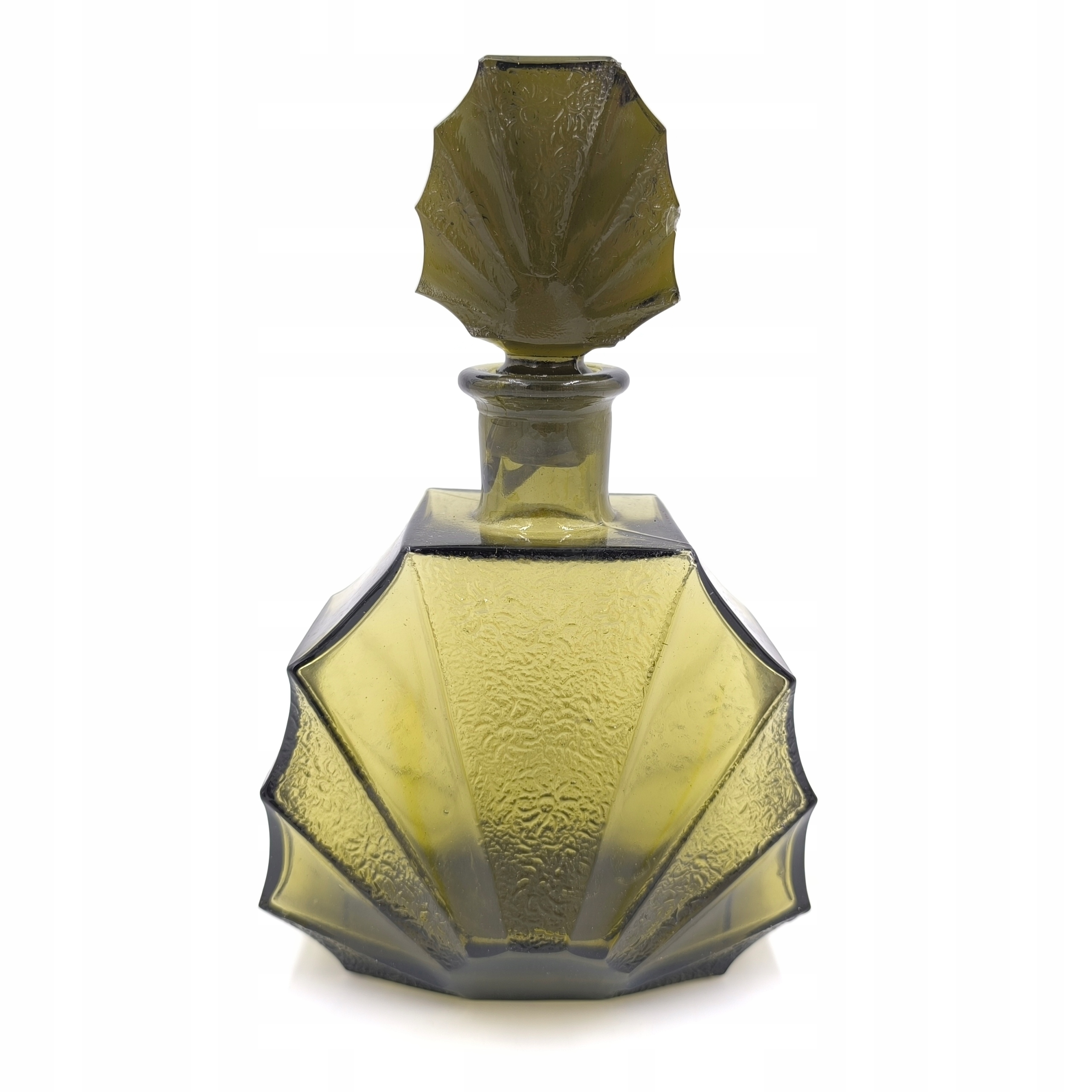 Скляний графин оливково-зеленого відтінку в геометричному стилі з відтінком ар-деко.