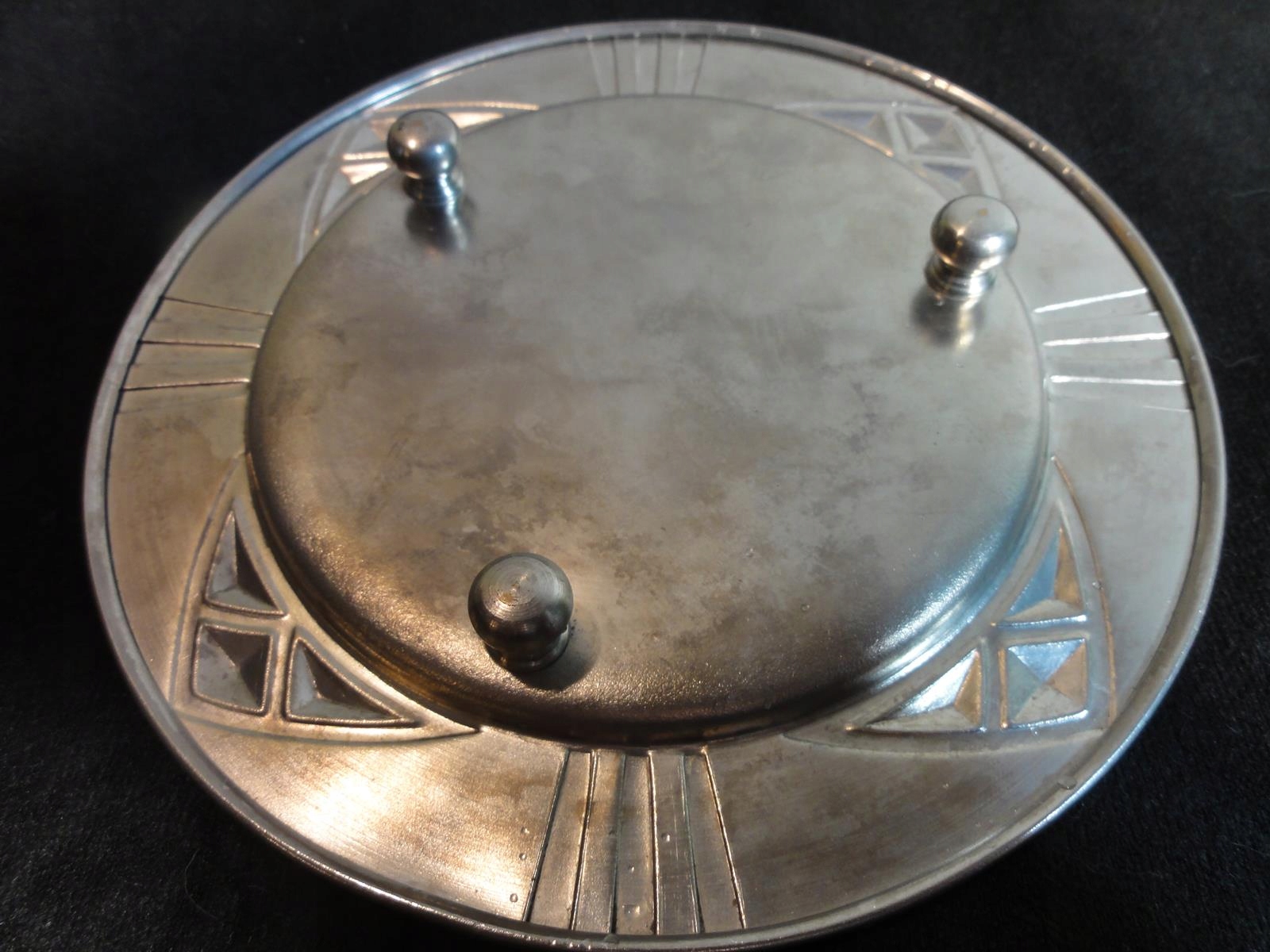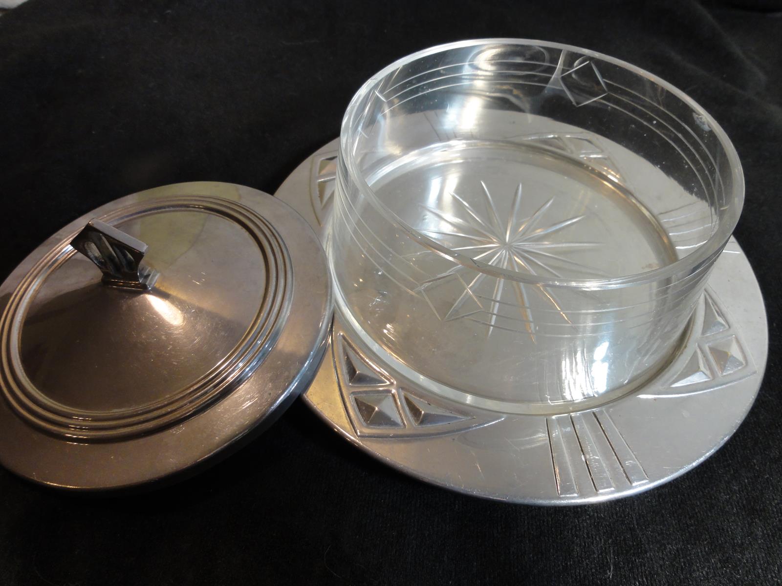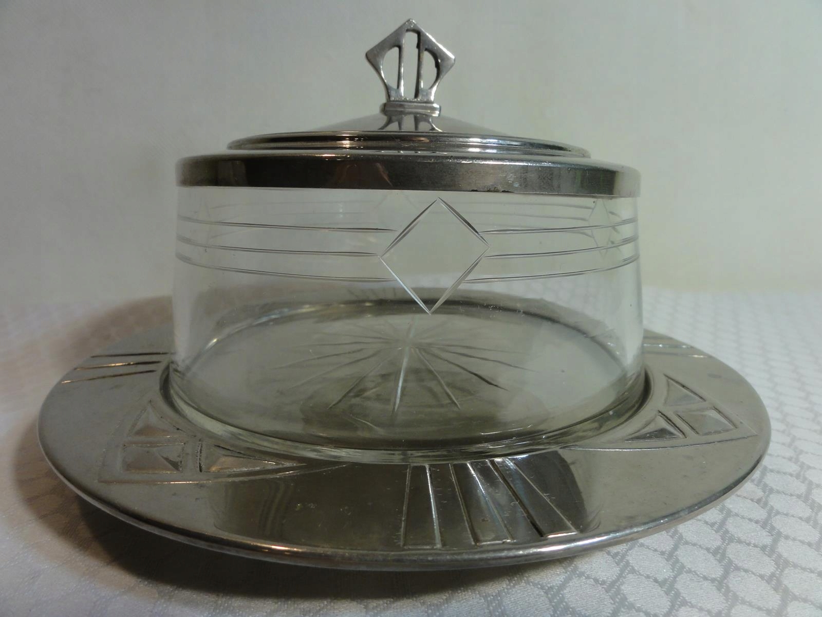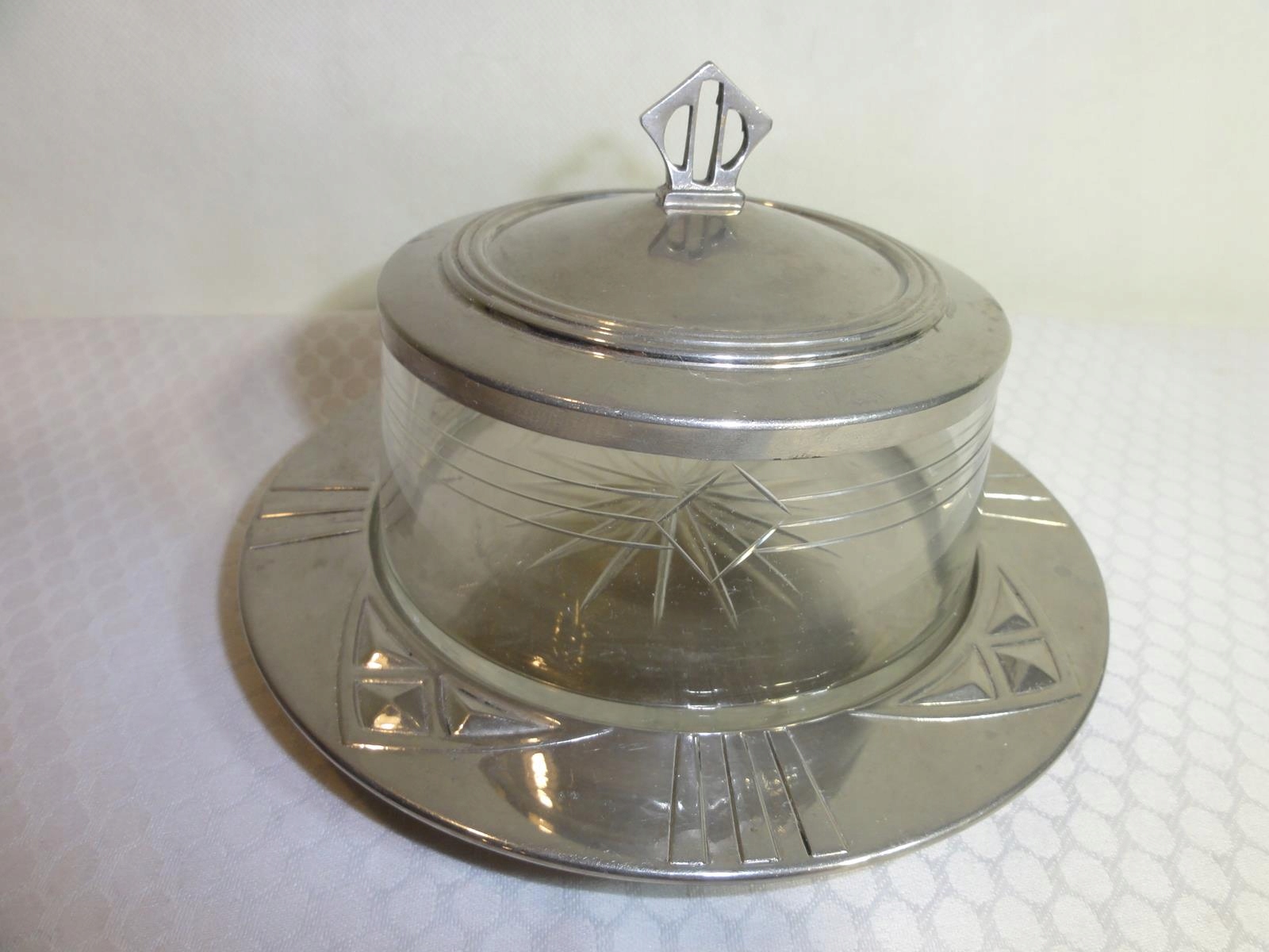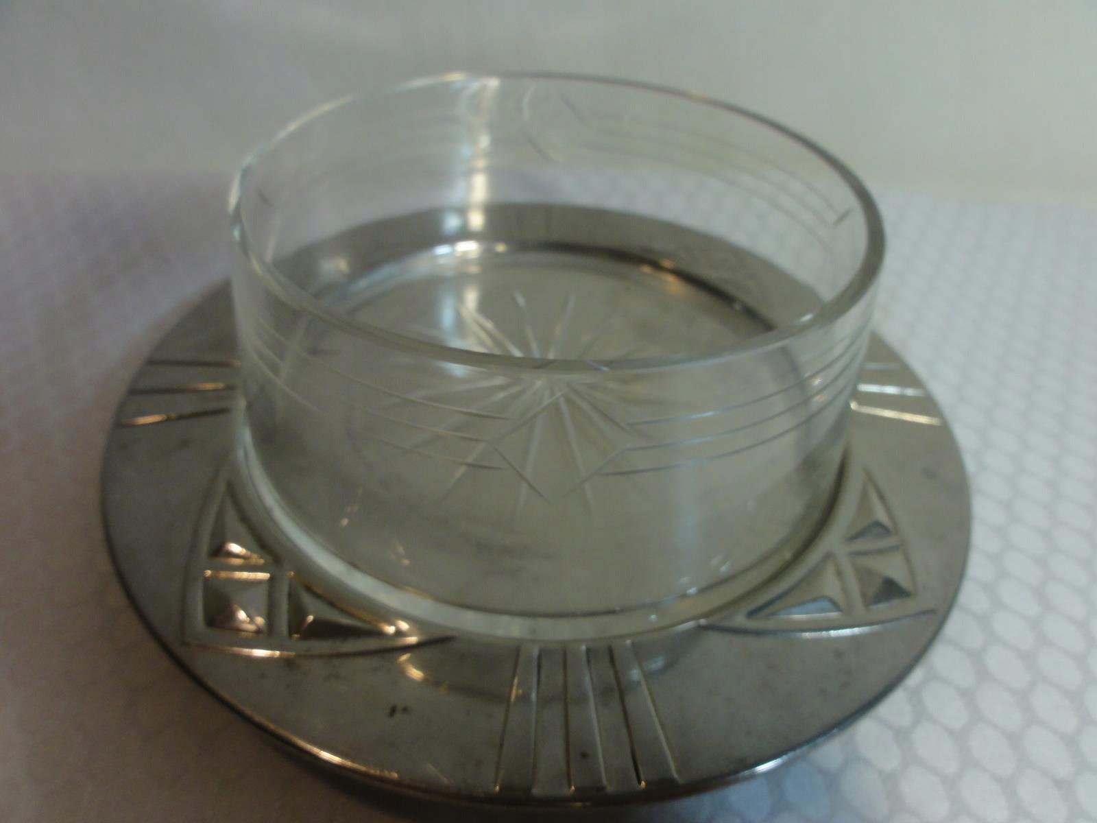 *масленниця скляна з нікельованою рамою, виготовлена на початку 20 століття,