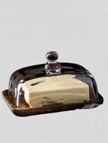 СКЛЯНА МАСЛЕННИЦЯ З ДЕРЕВ'ЯНОЮ ДНОЮ