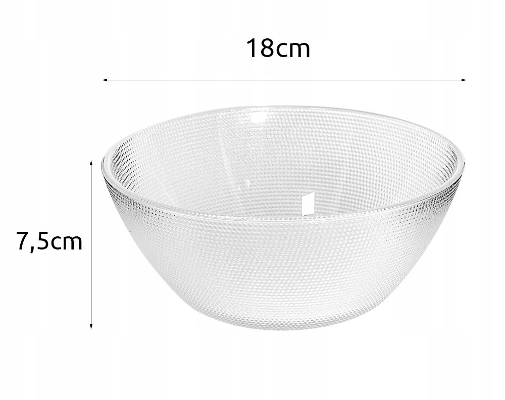 Кругла, прикрашена салатна чаша , була виготовлена з найвищої якості скла. Він повністю безпечний для здоров'я та затверджено для контакту з їжею. Салатна чаша ідеально підходить для подачі салатів, чіпсів, попкорну та інших маленьких закусок. Круглий салат, знизу, прикрашений рельєфними крапками, які додають їй цікавого персонажа - зробить кожен стіл привабливішим.
