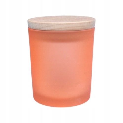 Скляна ємність для розливу свічок, помаранчева матова, 280 мл, з дерев'яною кришкою та ущільнювачем.