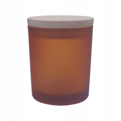 Скляна ємність для розливу свічок, матовий бурштин, 280 мл, з дерев'яною кришкою та ущільнювачем.