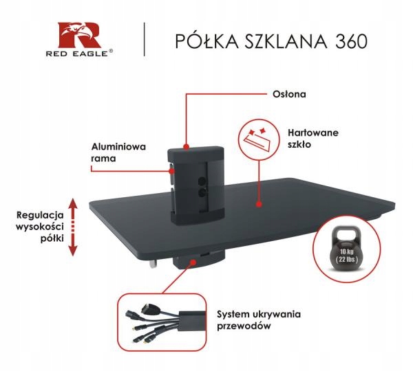 Скляна настінна полиця для телевізора для декодера RedEagle