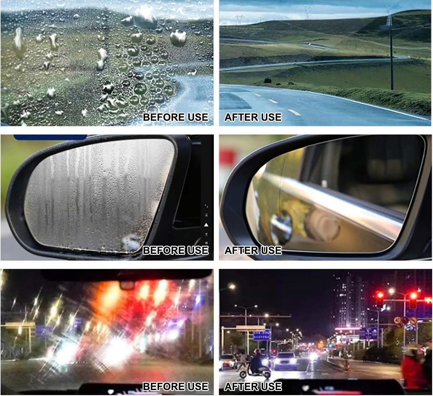 【Захист собак туману Насолоджуйтесь безпечним та комфортним записом із цим ключем до безпечного автомобіля. Цей очисний агент автомобіля може очистити та зберігати інші скляні поверхні, такі як лобове скло, бічні вікна та навіть скляні двері ванної кімнати. Він продовжує час між очищенням, заощадженням часу та енергією. Вони ефективно захищають від дощу та води, покращують яскравість і забезпечують прозору прозору кристал. Проблема -безперервне та початкове водіння.