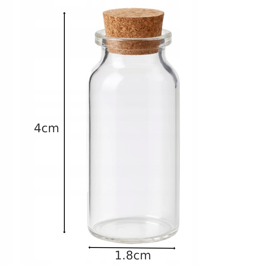- Dimensions: 1.8 cm in diameter x 4 cm height (with cork)