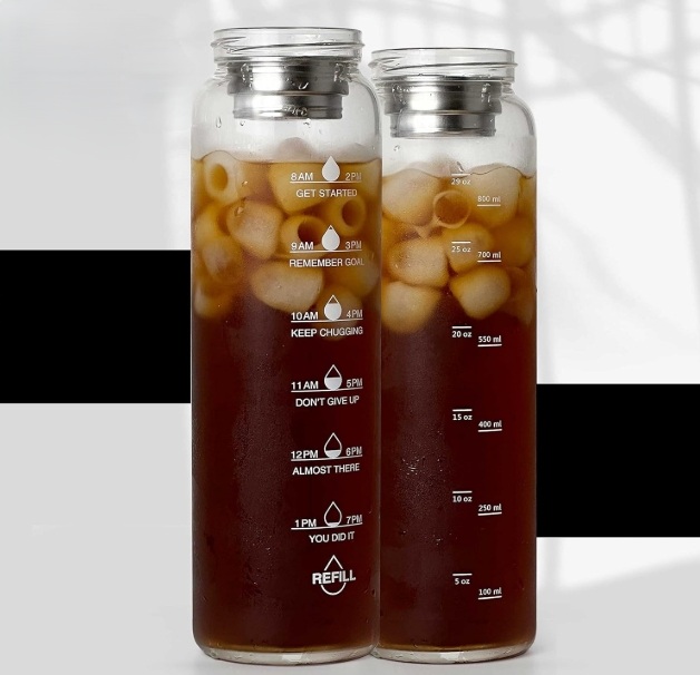 Мотивуючий маркер часу: Скляна пляшка з питтям з маркером часу та Ml Oz. Ідеально підходить для вимірювання та ідеального для підтримки гідратації у будь -який час. Широкий отвір, легко пити та чистити.