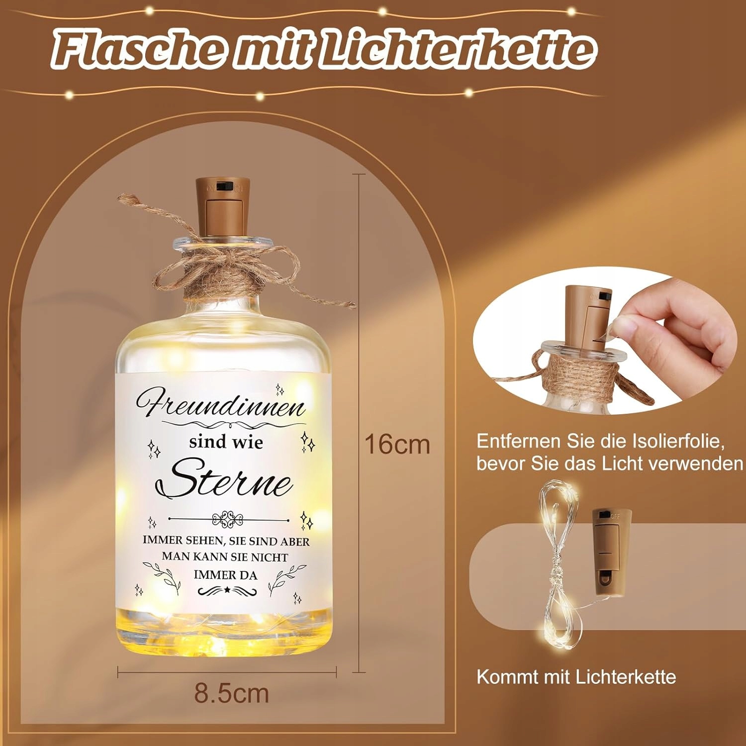 Персоналізація подарунка: прозора скляна пляшка з написом Girls are like stars; Ви можете поставити вогні в пляшку та прив’язати мотузку до горлечка пляшки, як вам подобається